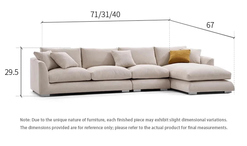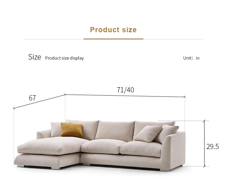 Cloud Down Filled Chaise Sofa Living Room Shaped Recliner