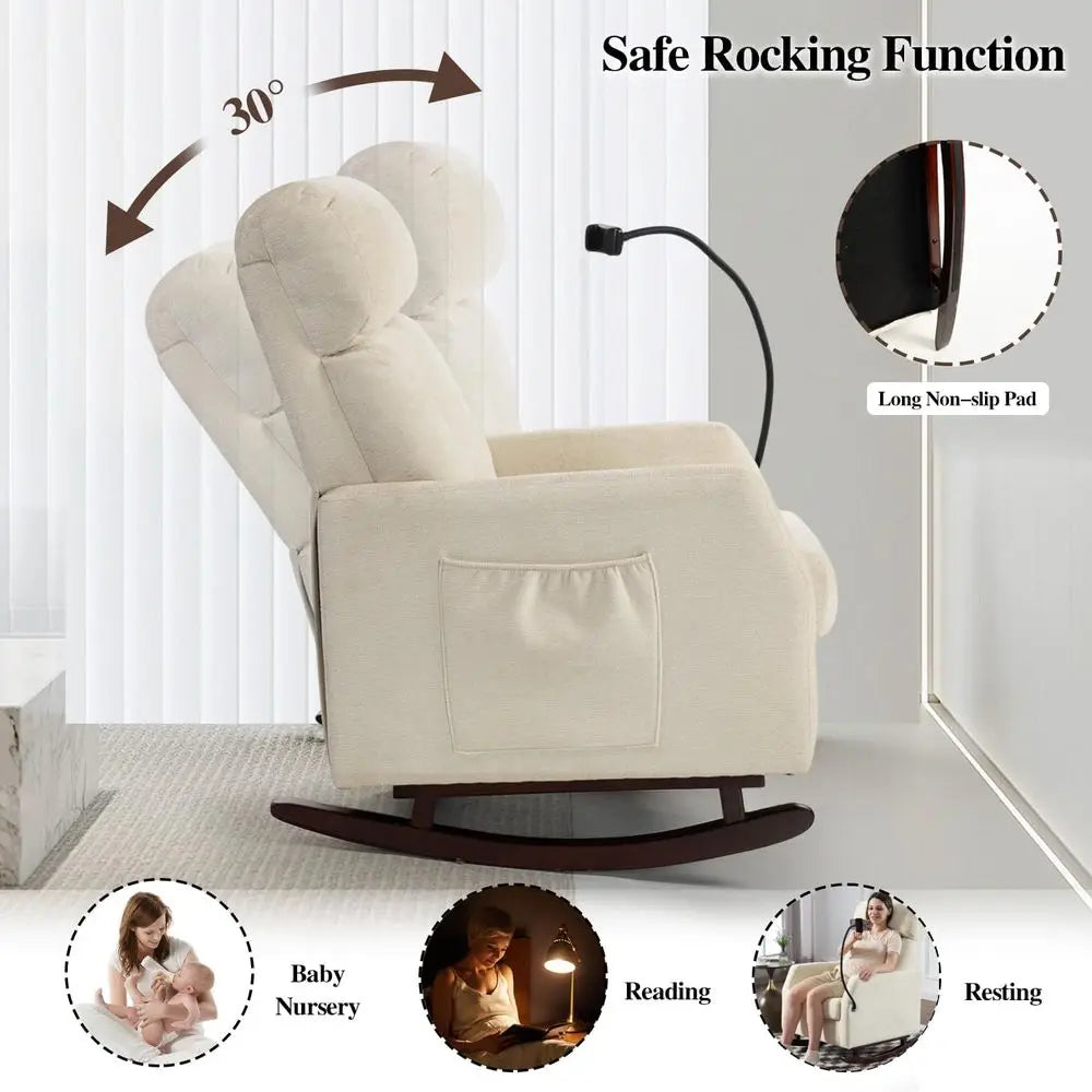 Modern Glider Recliner Chair with Retractable Phone Holder