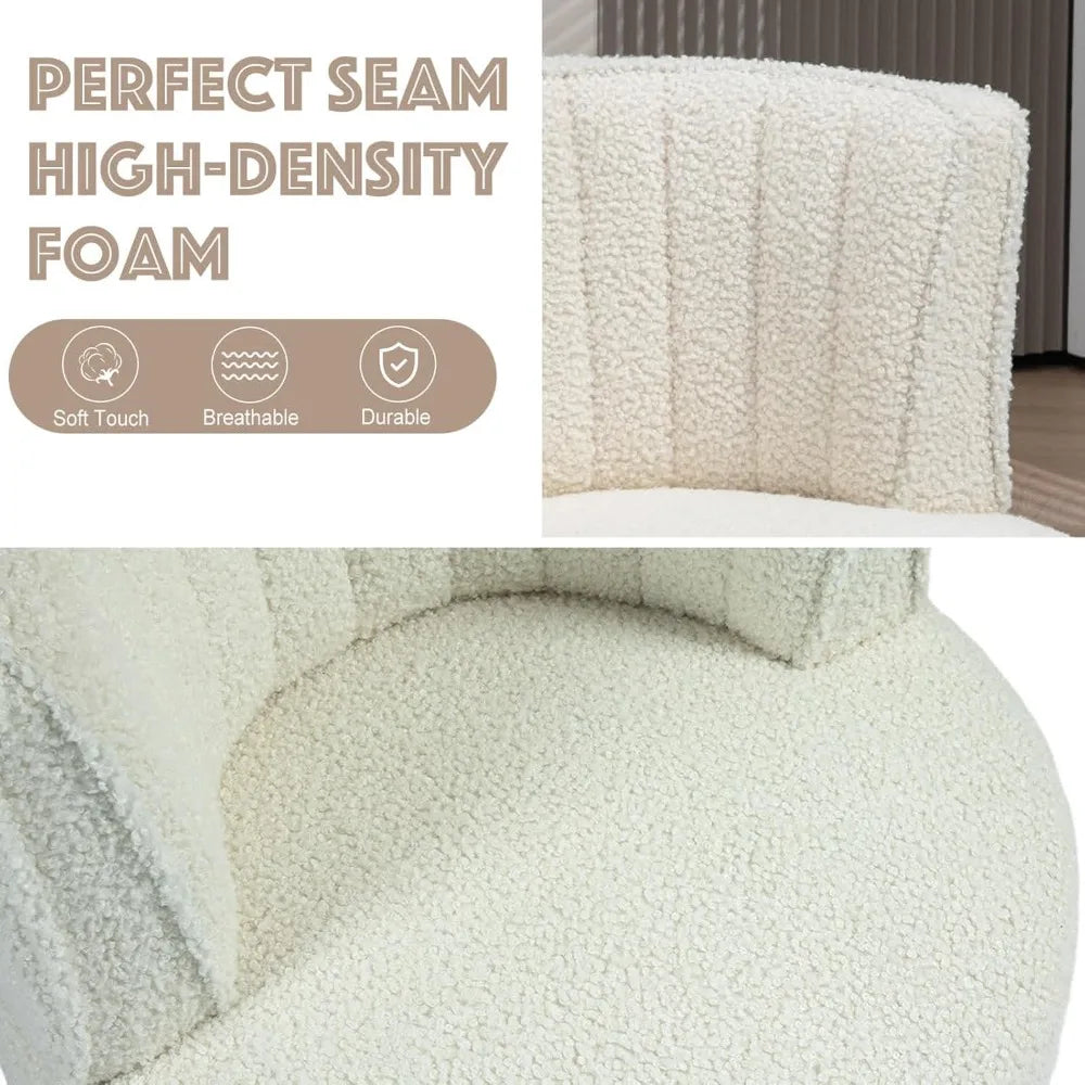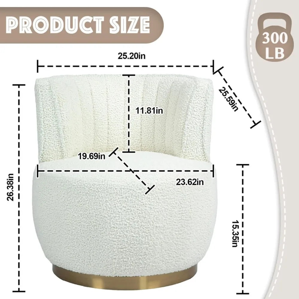 White Modern Swivel Chair Round Upholstered Comfortable Accent Sherpa