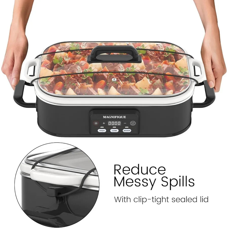 4 Quart Programmable Slow Cooker with Ceramic Baking Dish for Family Dinners OvenSafe Durable Kitchen Appliance Ideal for Lasag