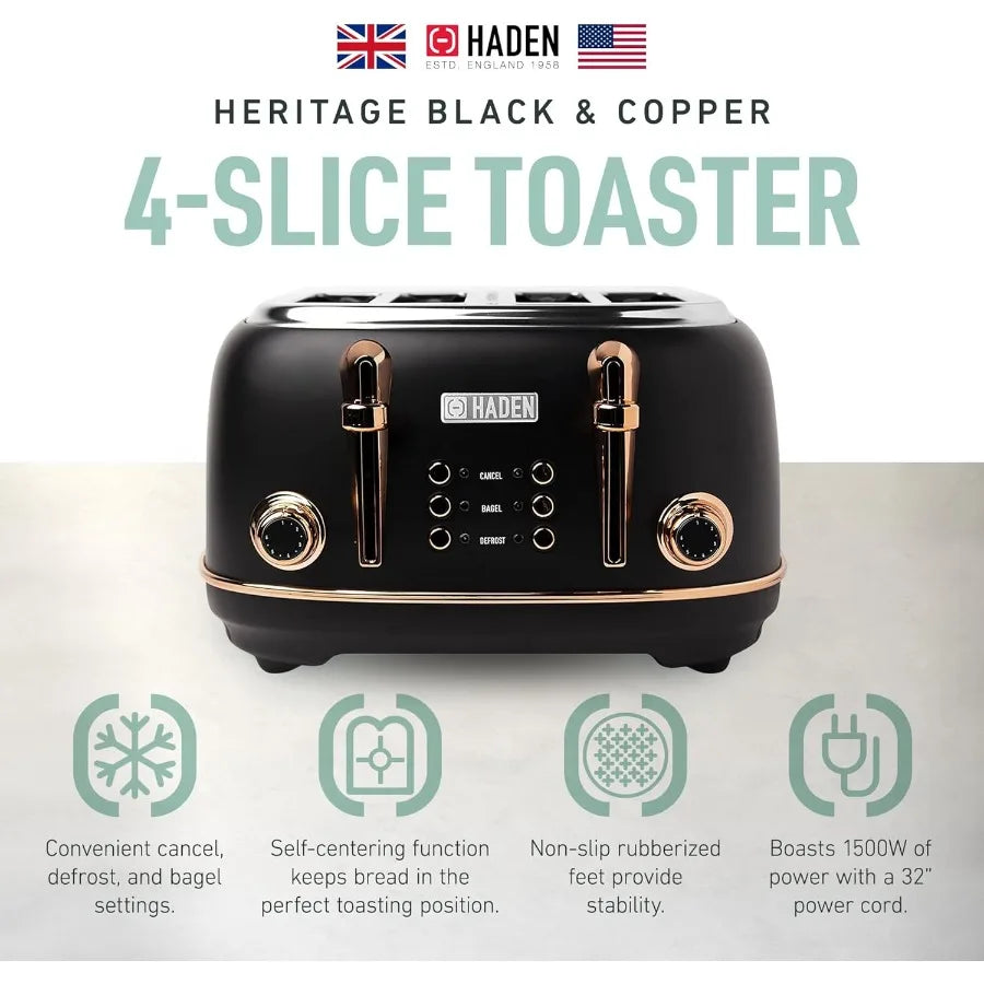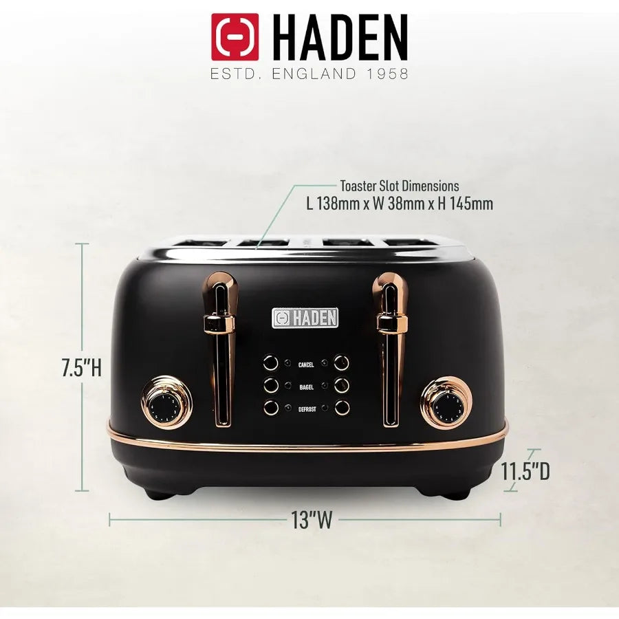 Heritage 4slice Toaster with Extra Wide Slots 1500watt Black