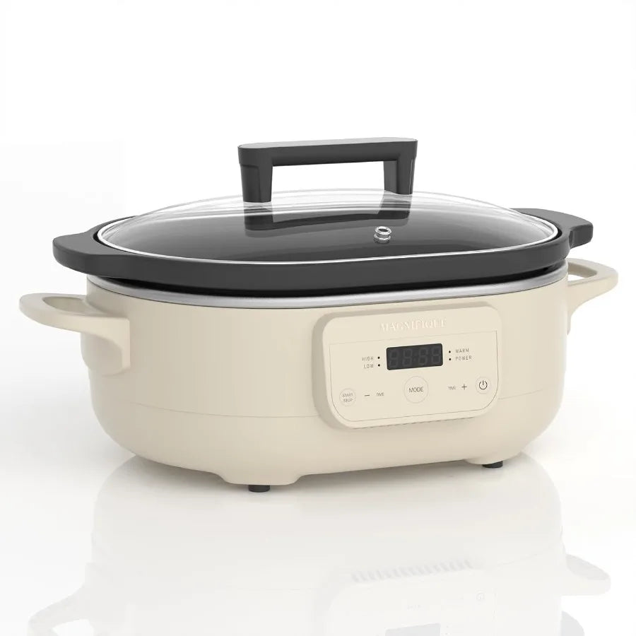 MAGNIFIQUE 6 Quart Programmable Slow Cooker with Removable Nonstick Pot for Healthy Cooking Ideal Small Kitchen Appliance for F