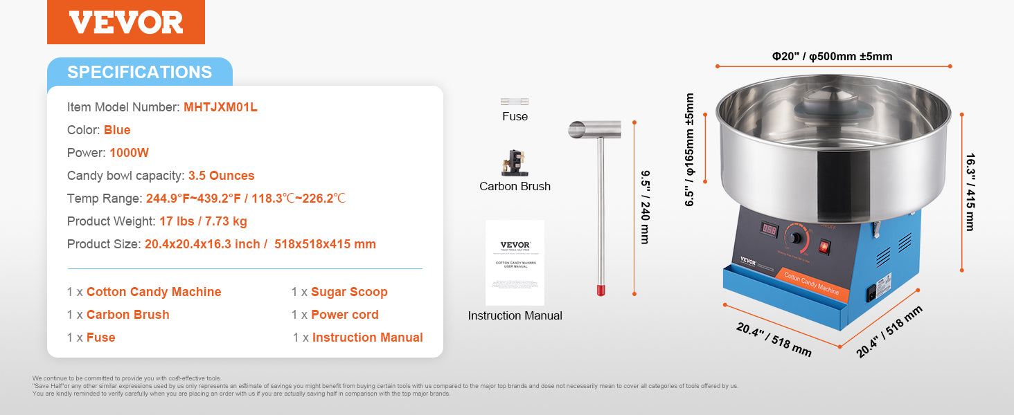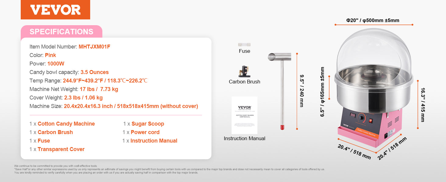 SucceBuy Electric Cotton Candy Machine Floss Maker Commercial Stainless