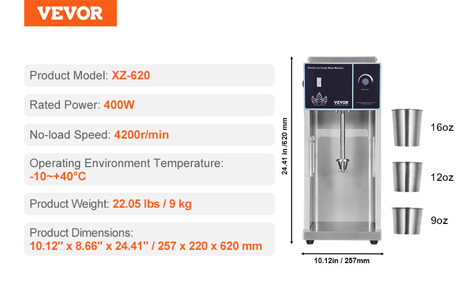 VEVOR 400w Ice Cream Blender Stainless Steel High Speed