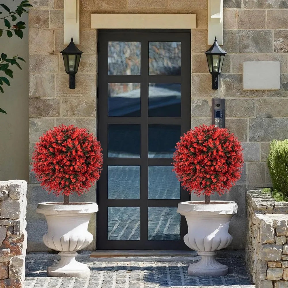 Artificial Red Boxwood Topiary Ball Bushes Outdoor Resistant Faux