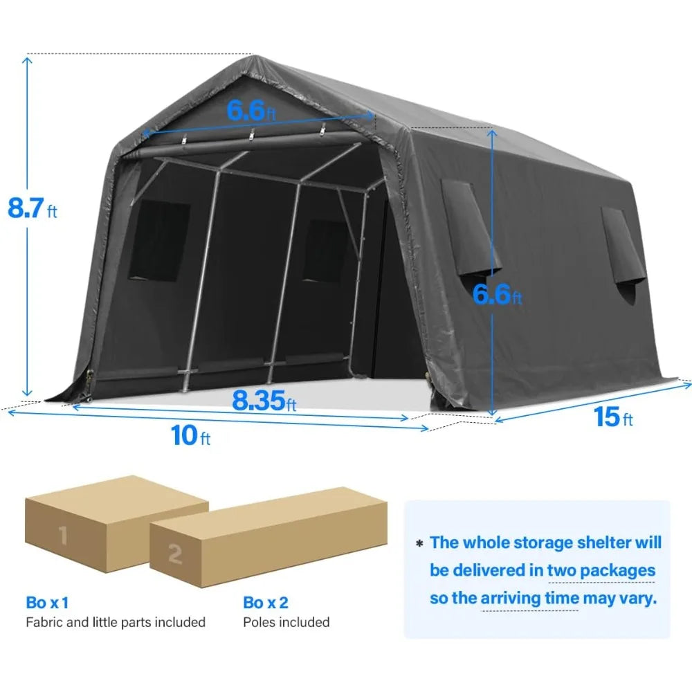 10x15-Inch 10x15 Shelter Storage Shed Steel Metal Peak Roof - Portable