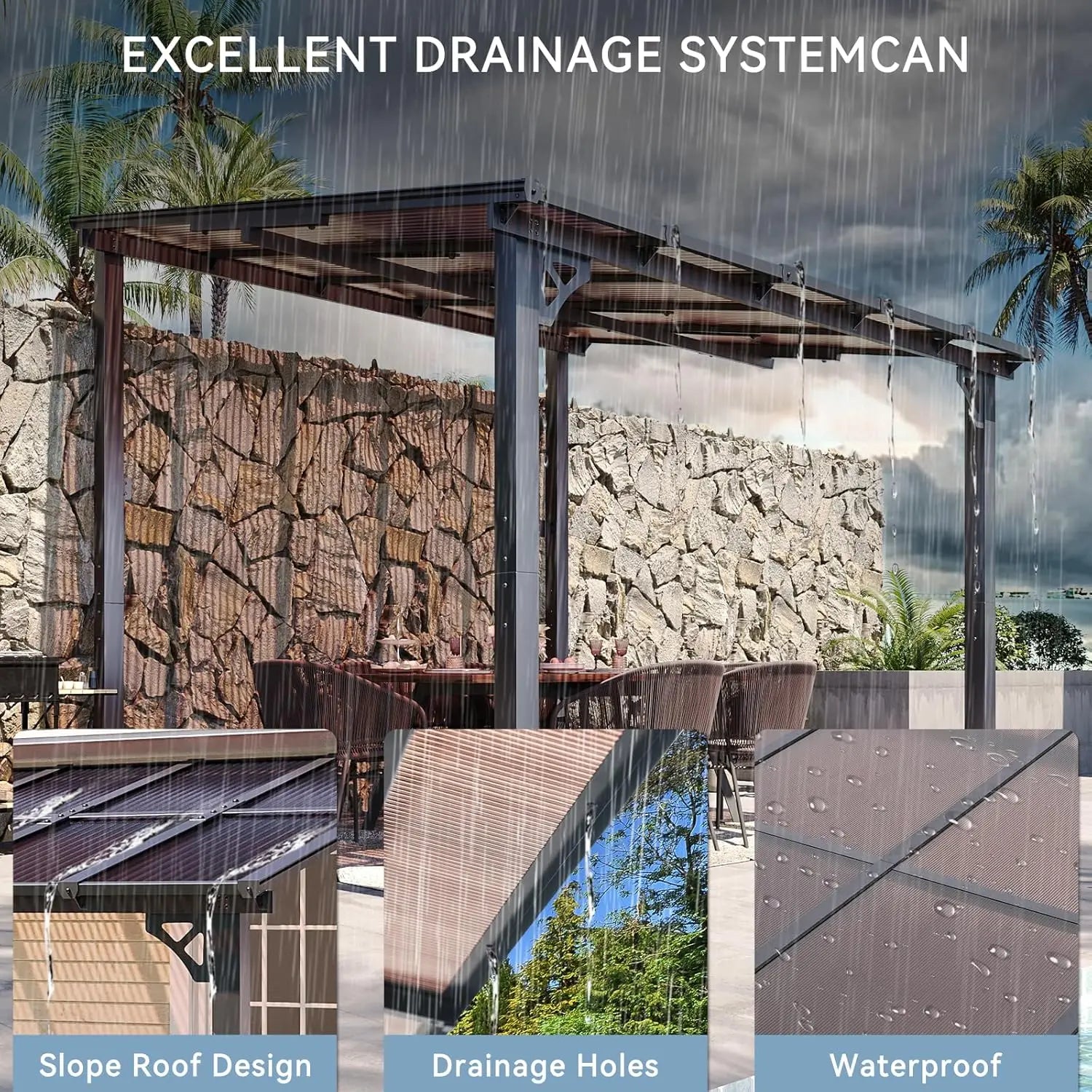 This 333", white awnings brings both functionality and style to your space. The waterproof lets you it won't be damaged by water or moisture.