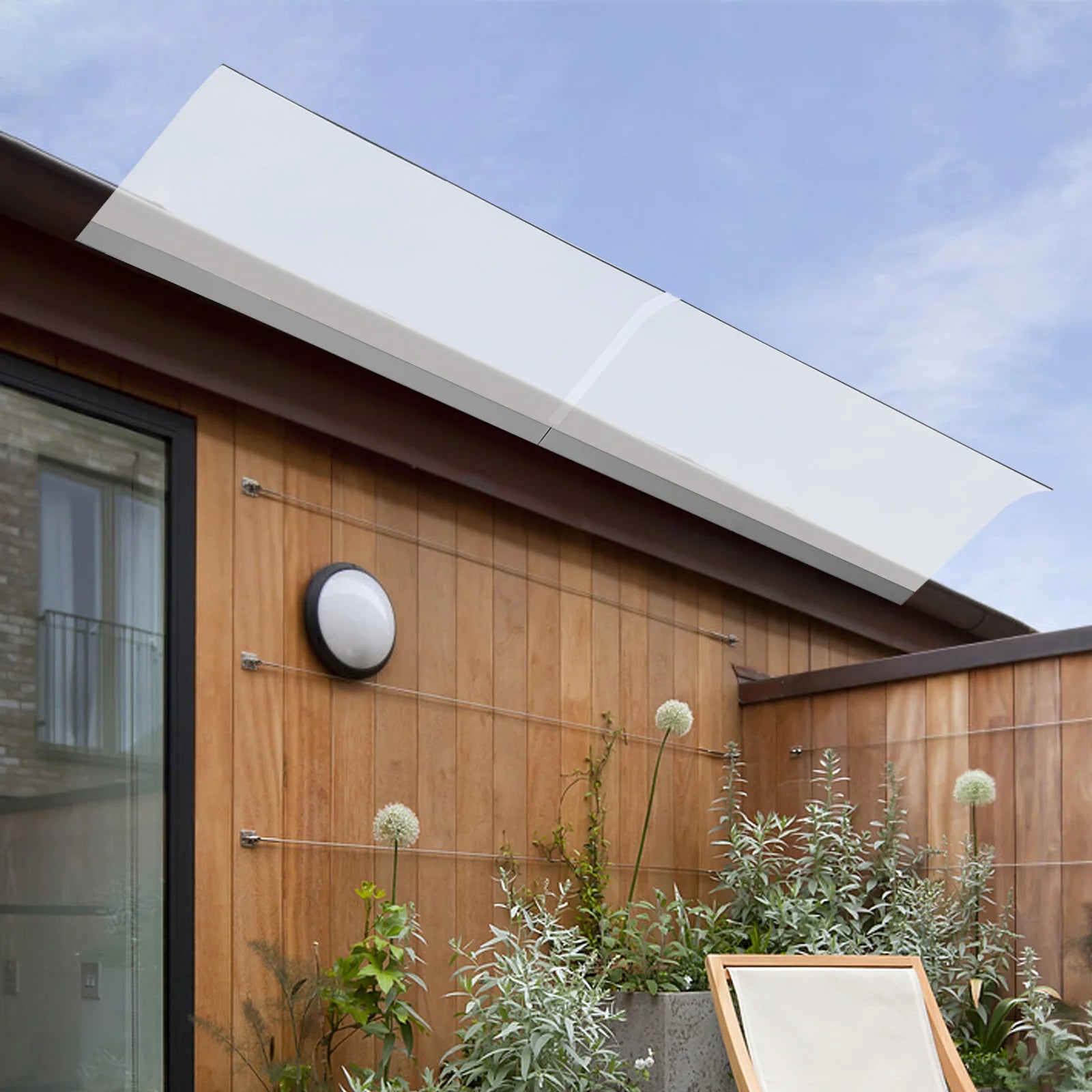 This 333", white awnings brings both functionality and style to your space. The waterproof lets you it won't be damaged by water or moisture.