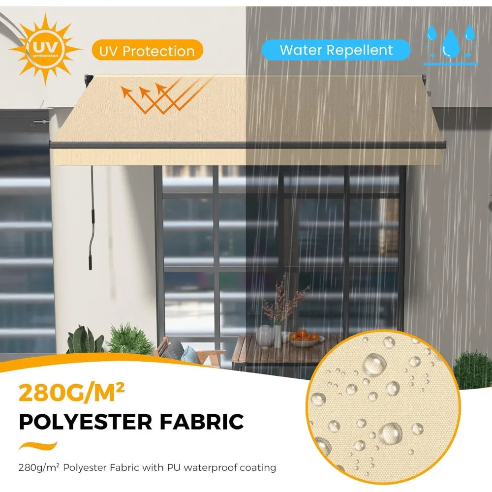 This 333", beige awnings brings both functionality and style to your space. The adjustable height lets you adjust it to your preferred height.