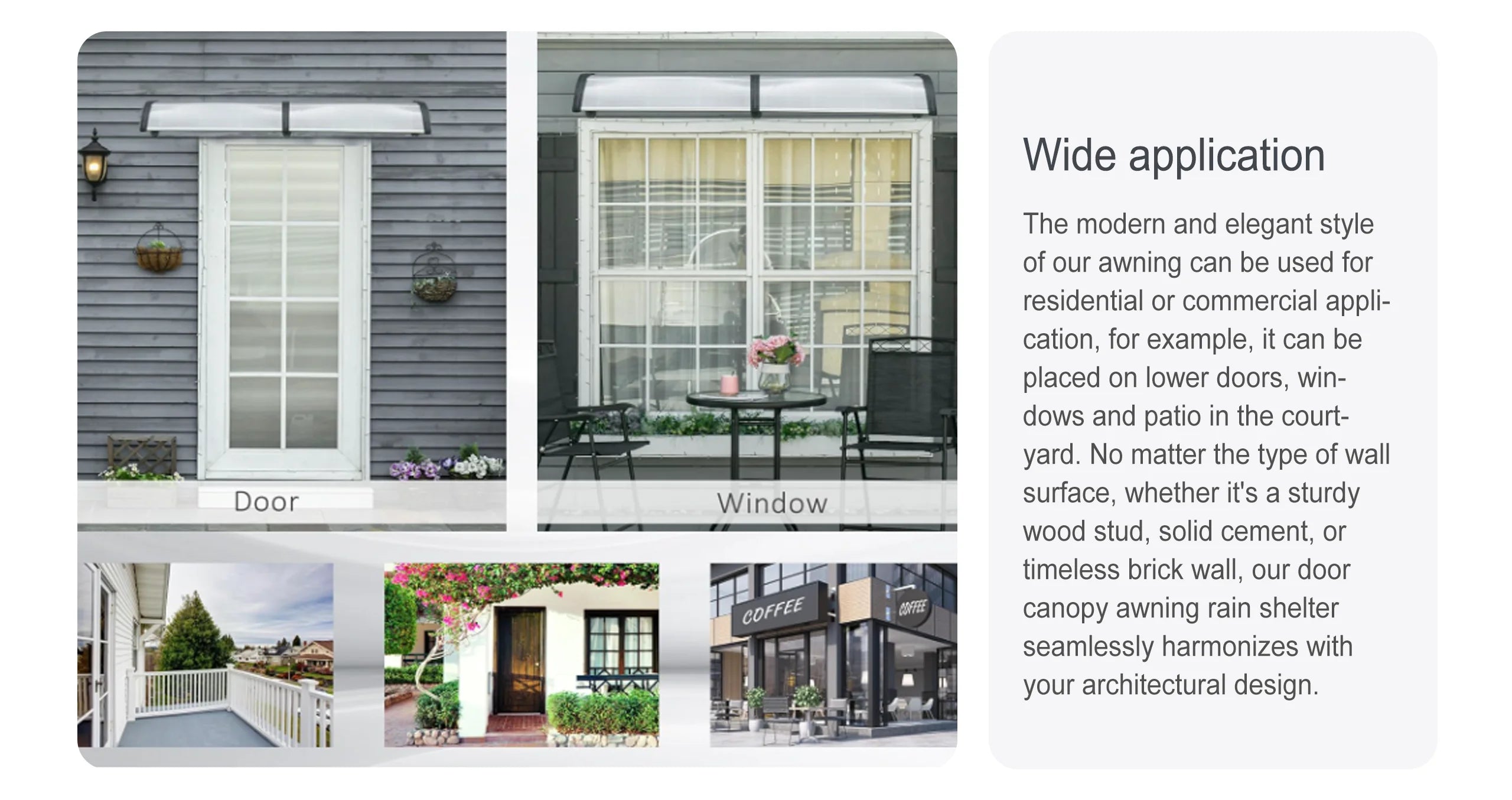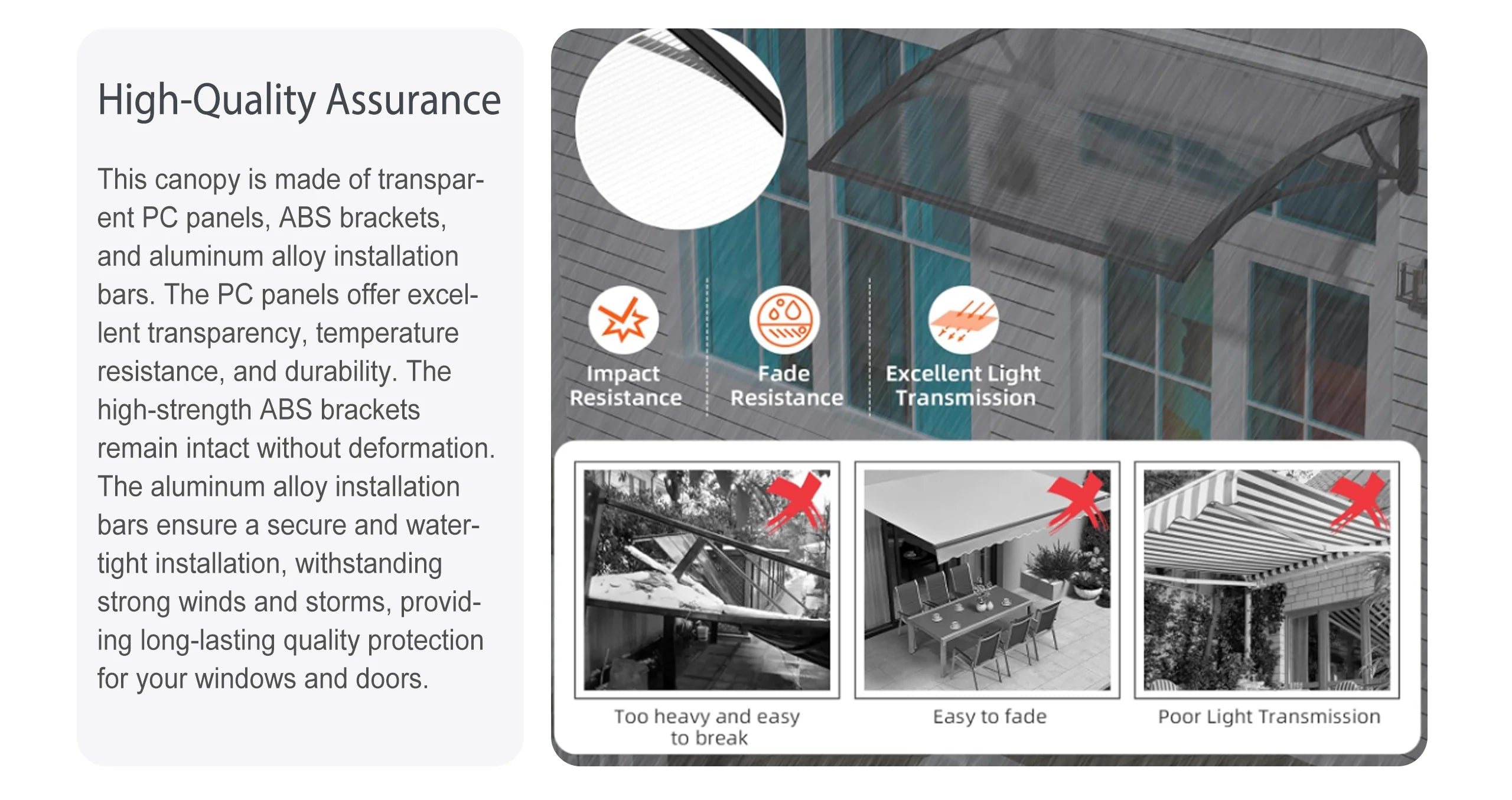 Featuring 333", white construction, this awnings combines durability with aesthetic appeal. The waterproof lets you it won't be damaged by water or moisture.