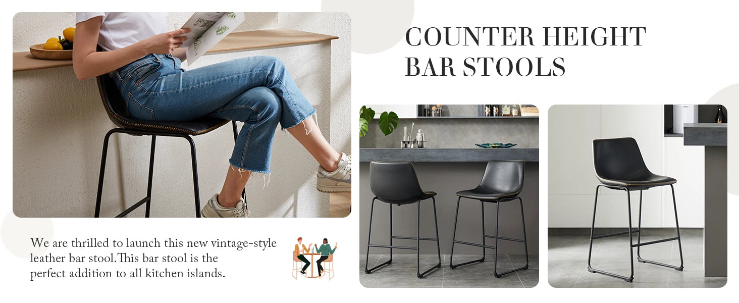 【Waterproof Leather Bar Stool】 Upholstered in premium crazy-horse faux PU leather, these dining chairs set of 2 have a charming farmhouse and rustic tone. The waterproof leather is easy to clean and maintain, requiring only a damp towel to keep them looking brand new.