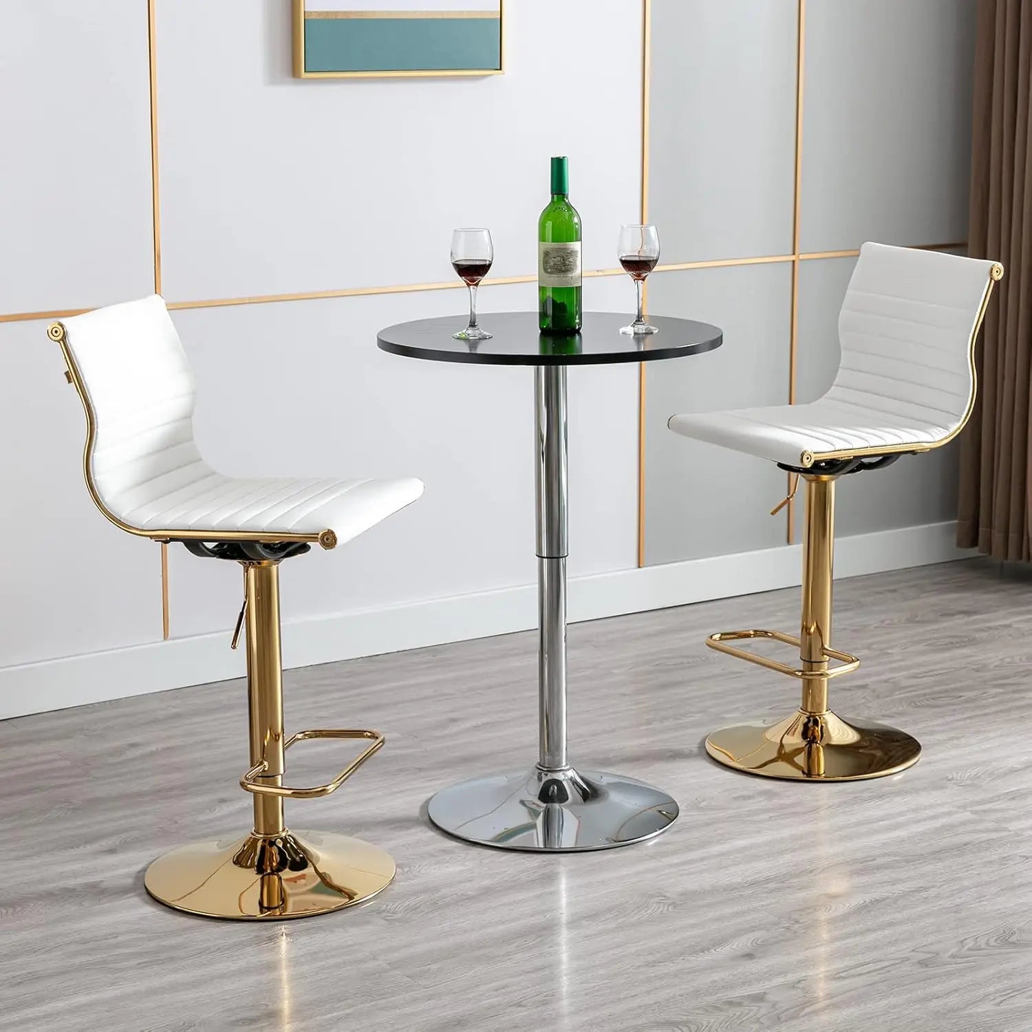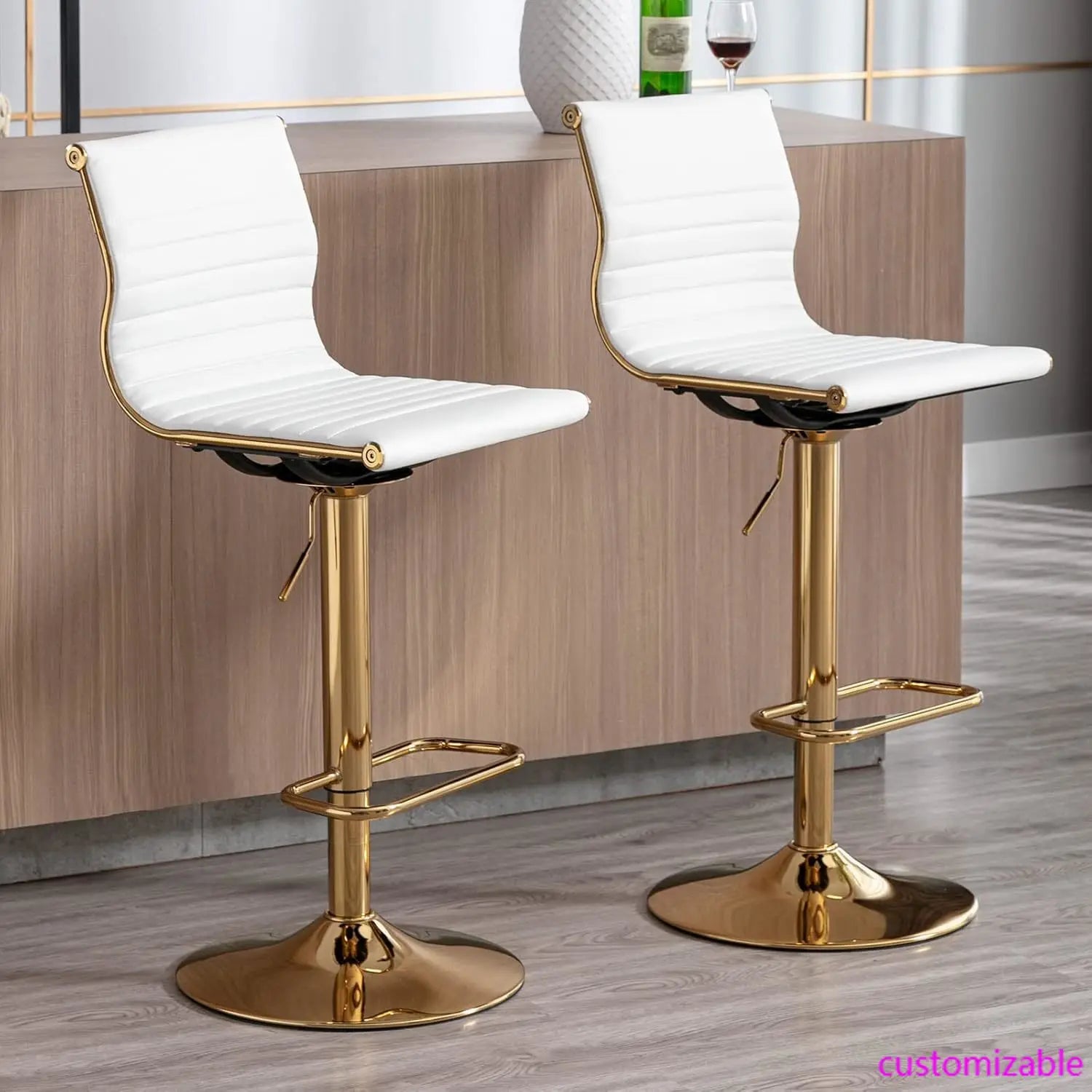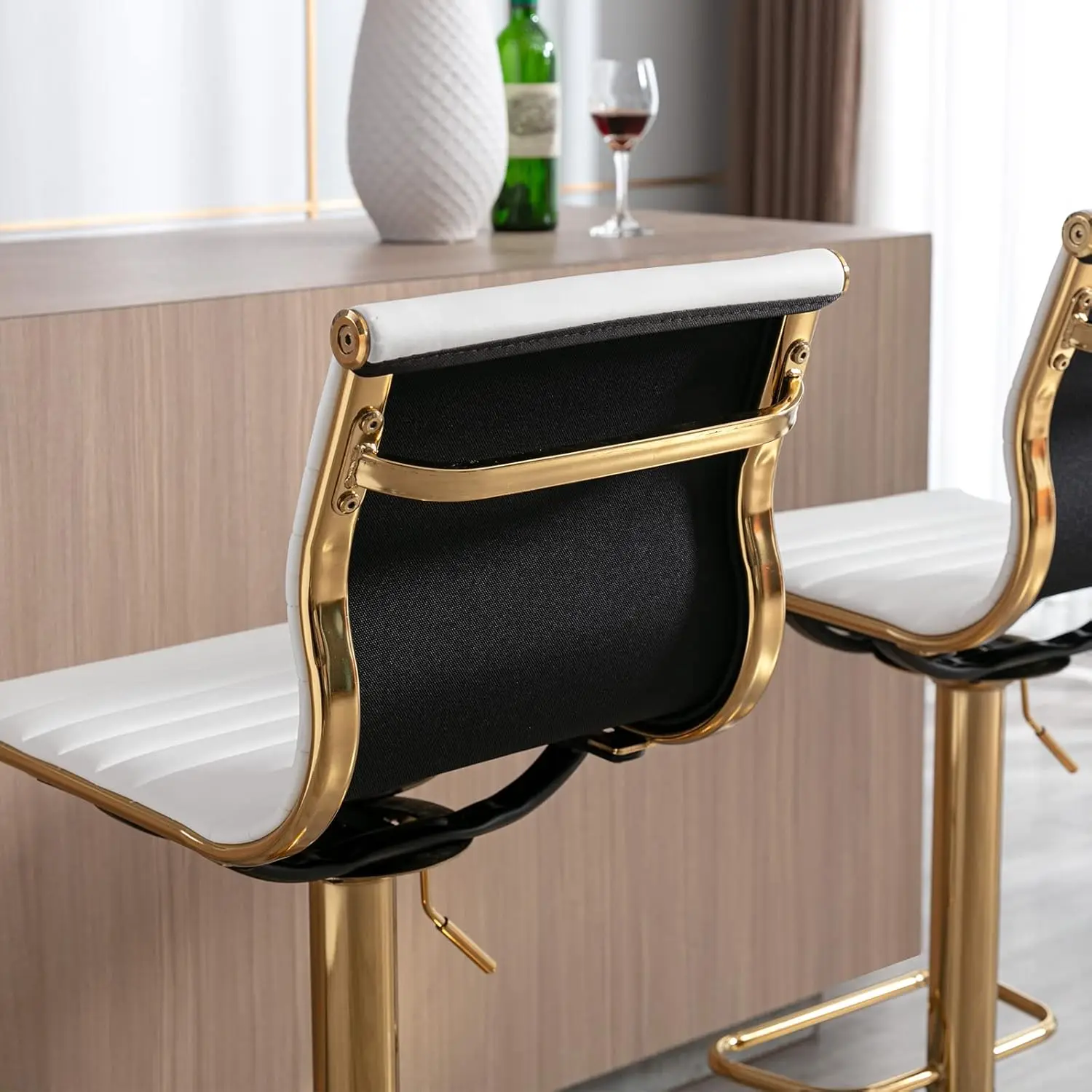 Metal Bar Stools Chairs Set of 2 Height Adjustable Barstools Modern White PU Leather Armless Counter Stool with Golden Base