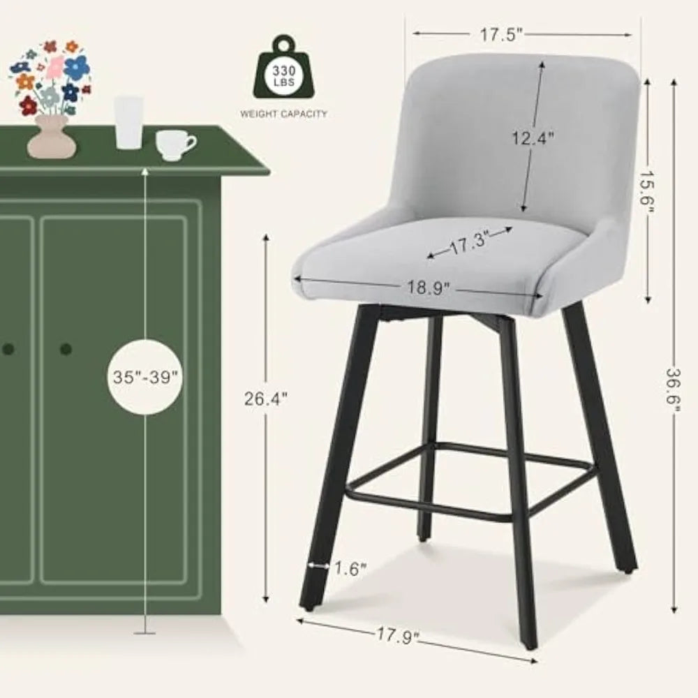 WIDENED METAL LEGS: Barstool legs are 1.6 inches wide, sturdy and stable structure; Thickened cross iron frame links four feet, improve safety. Island chairs with 330LBS load capacity; non-slip feet mute and protect the floor