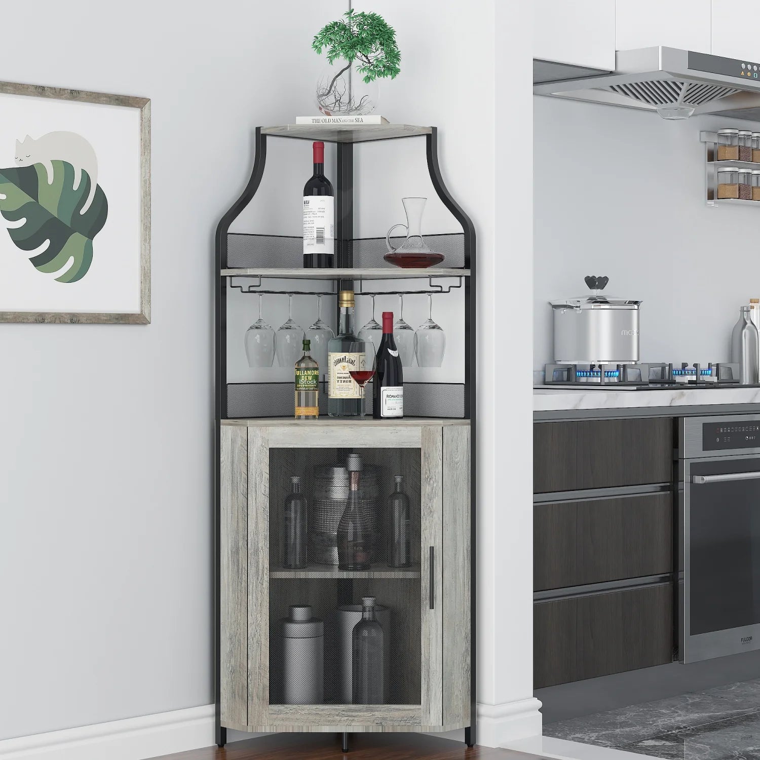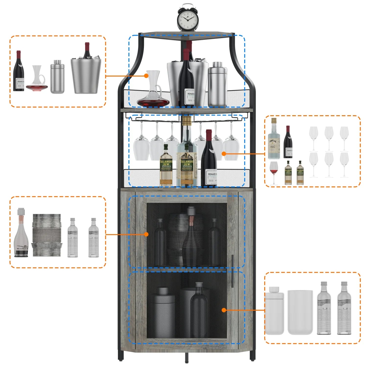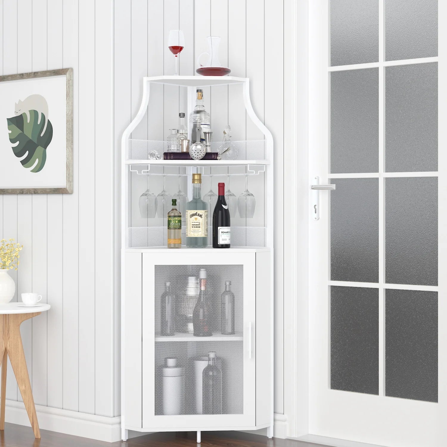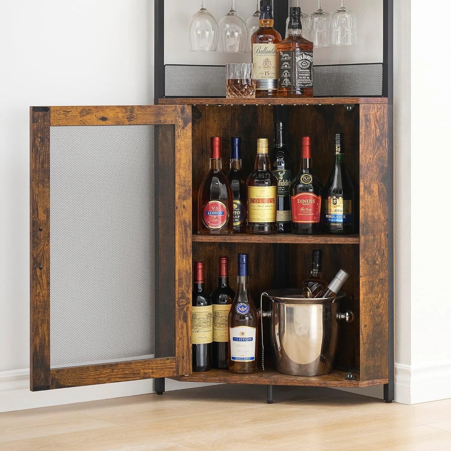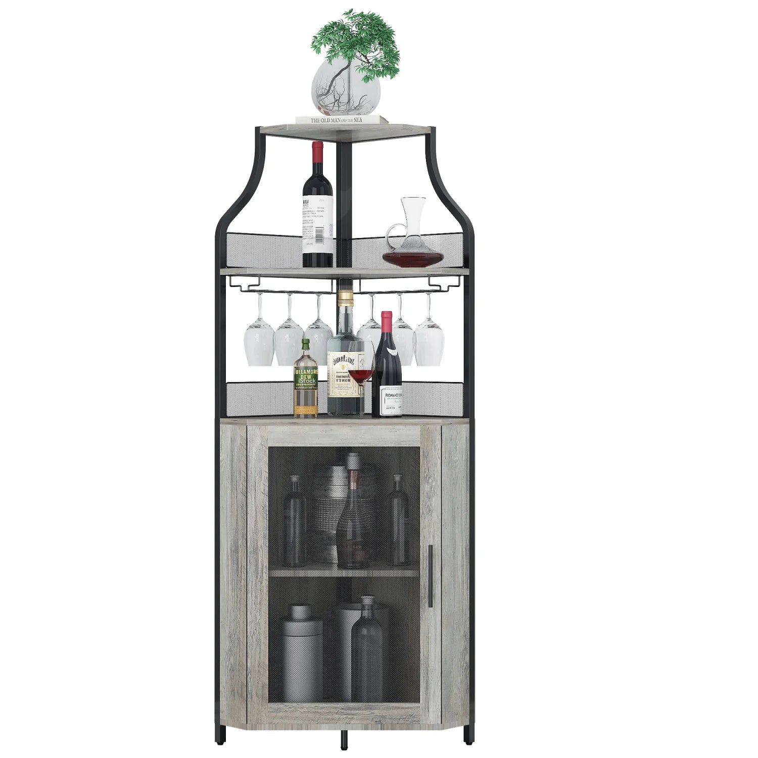 Corner Wine Cabinet with Detachable Rack Bar Barn Door
