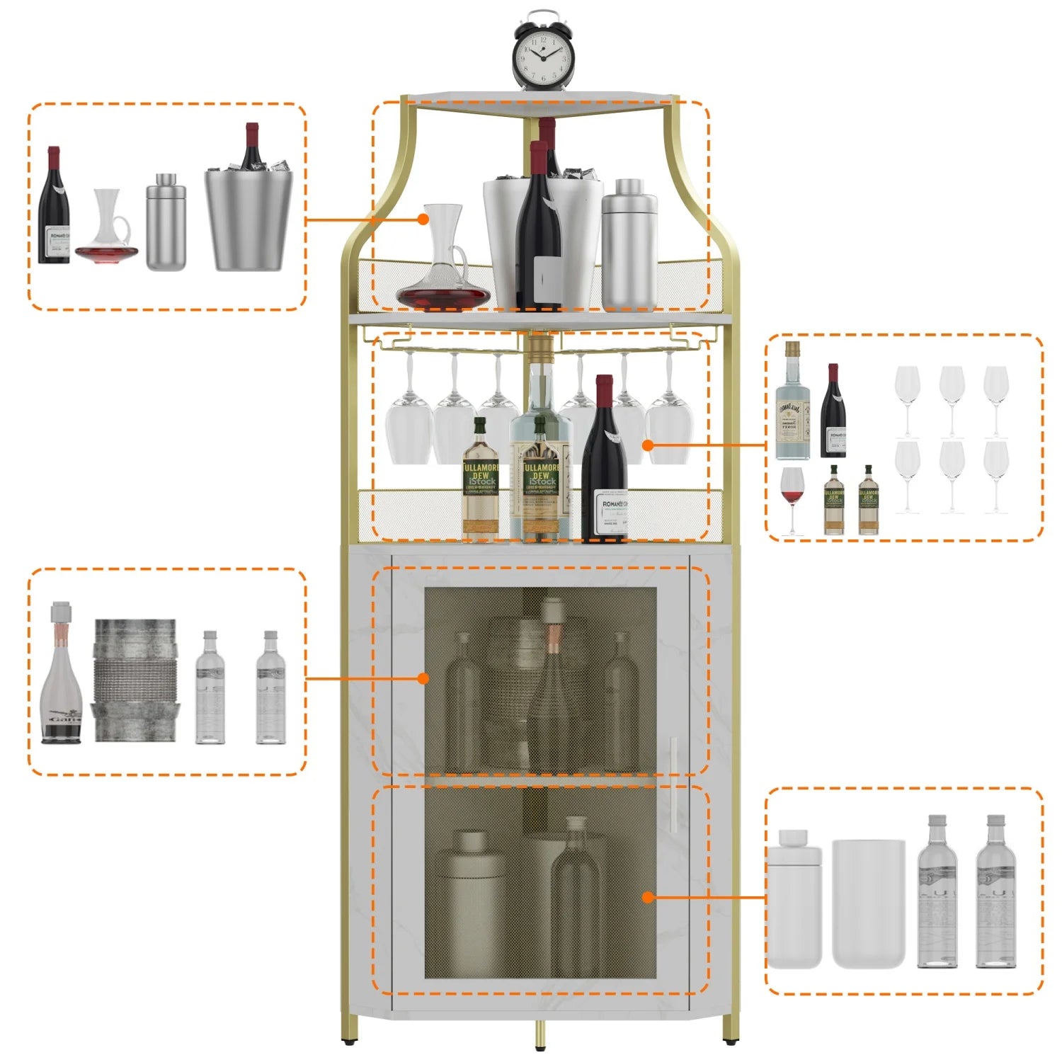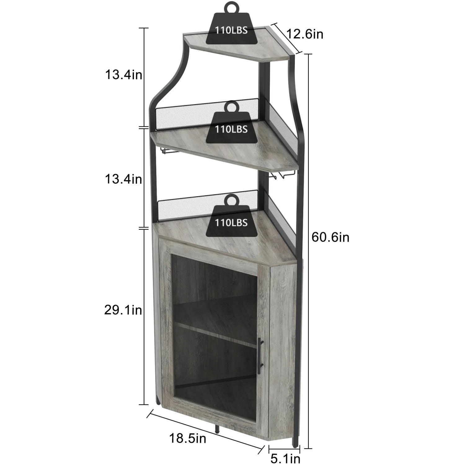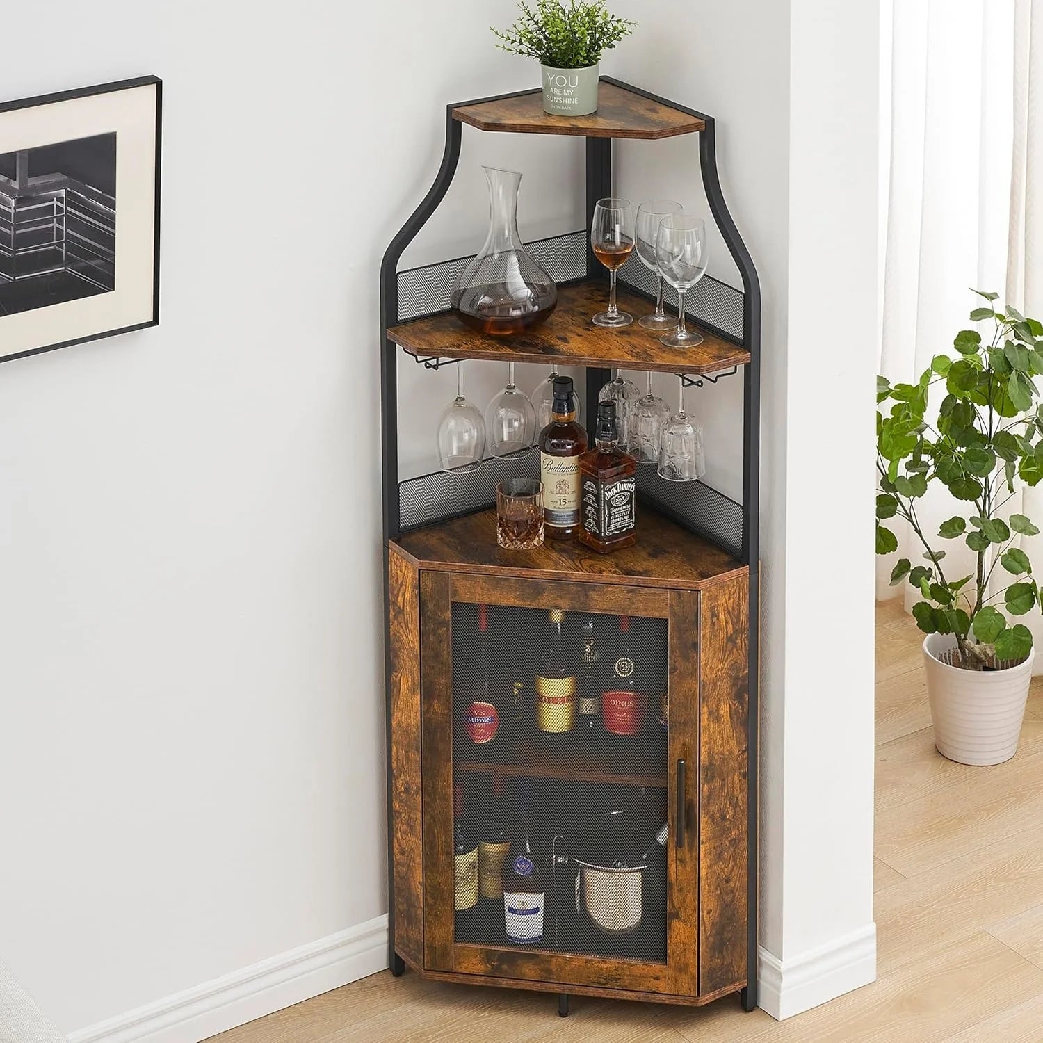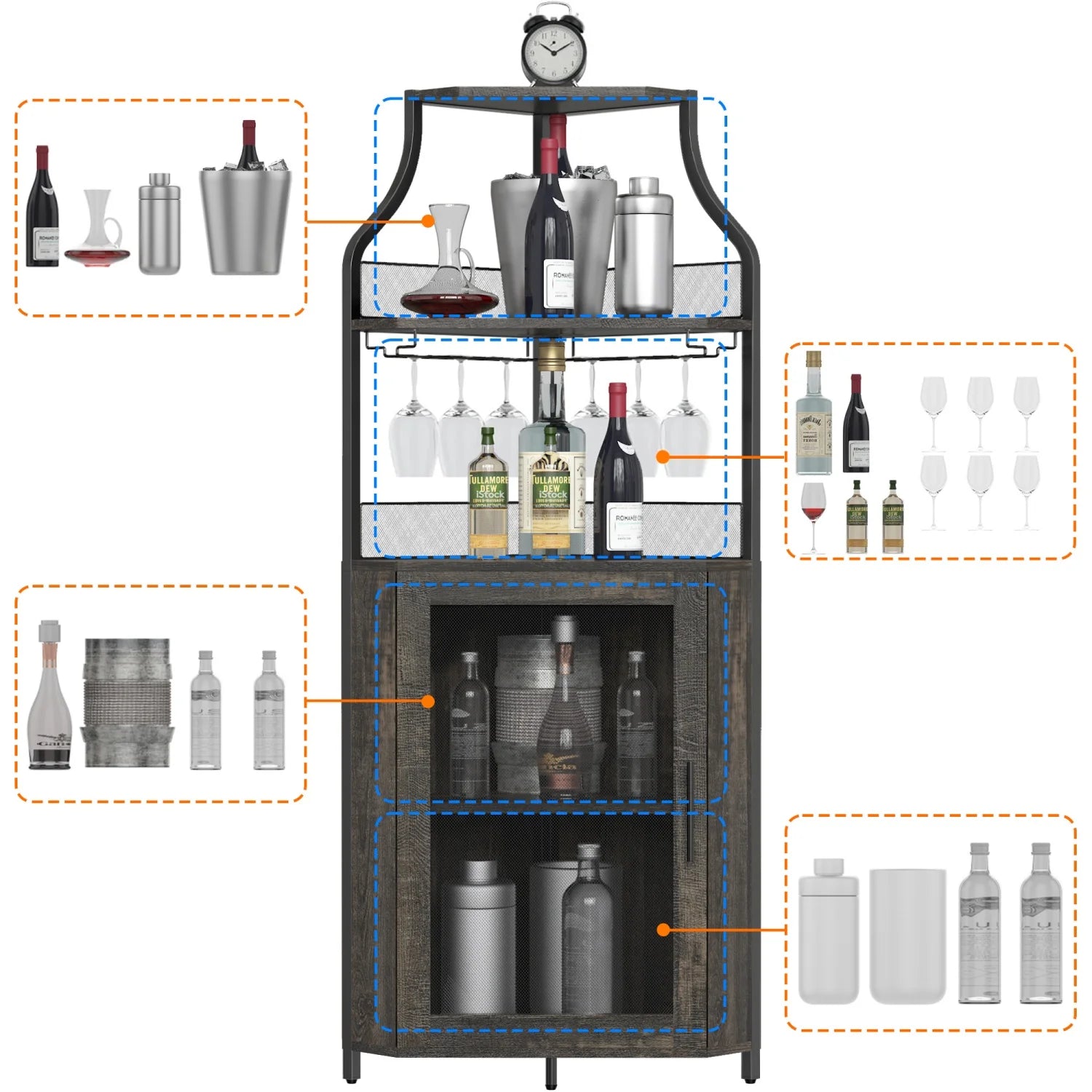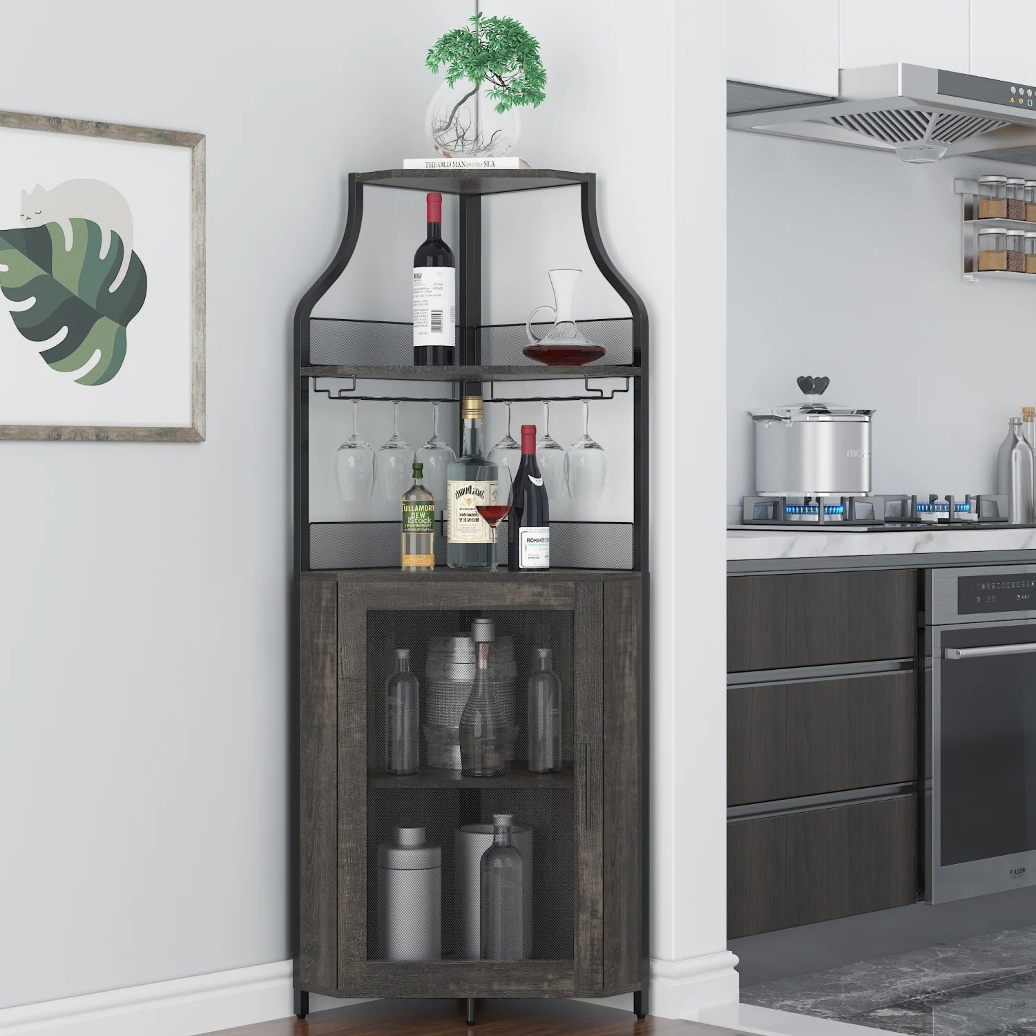 Corner Wine Cabinet with Detachable Rack Bar Barn Door