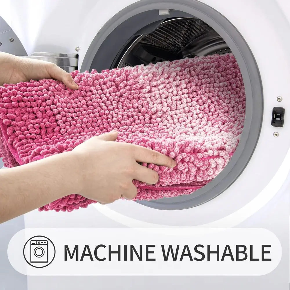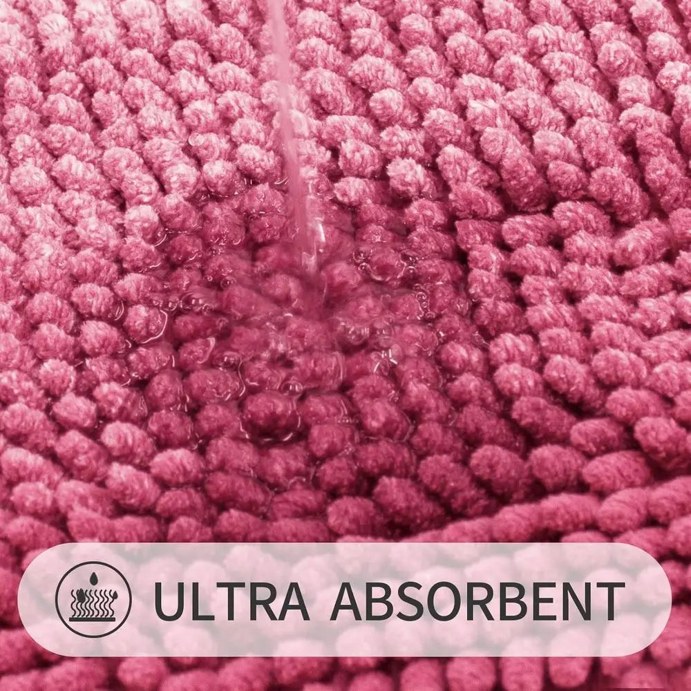 Piece Pink Chenille Bath Rug Set Non Slip Mats