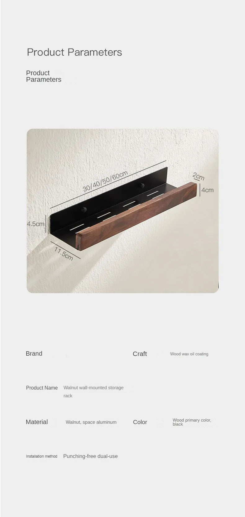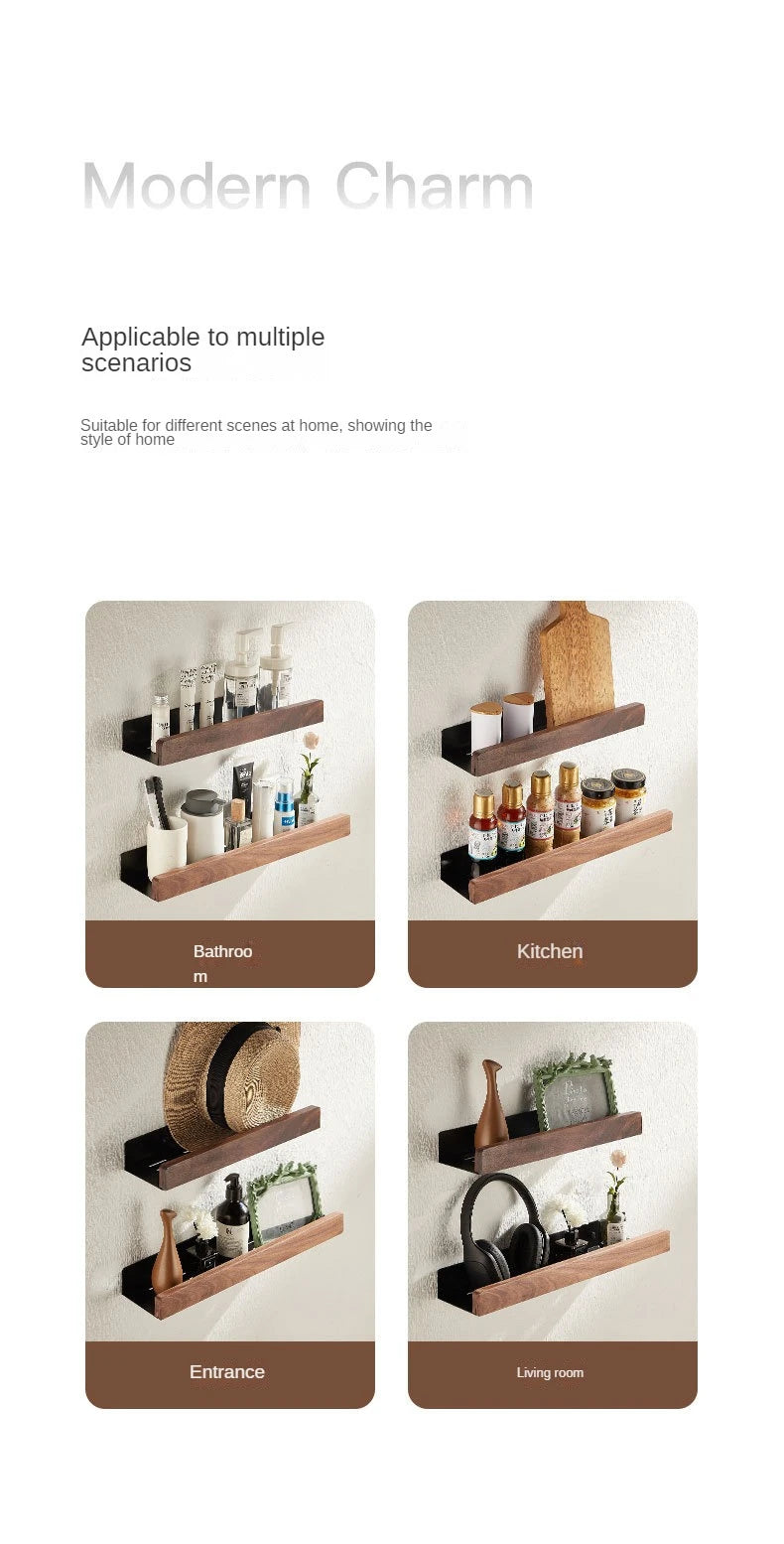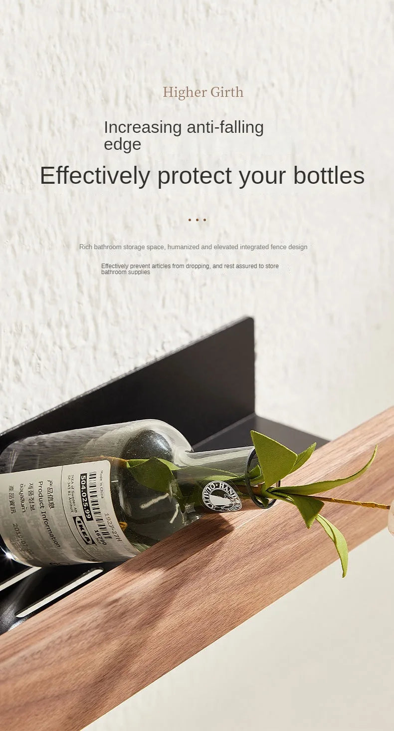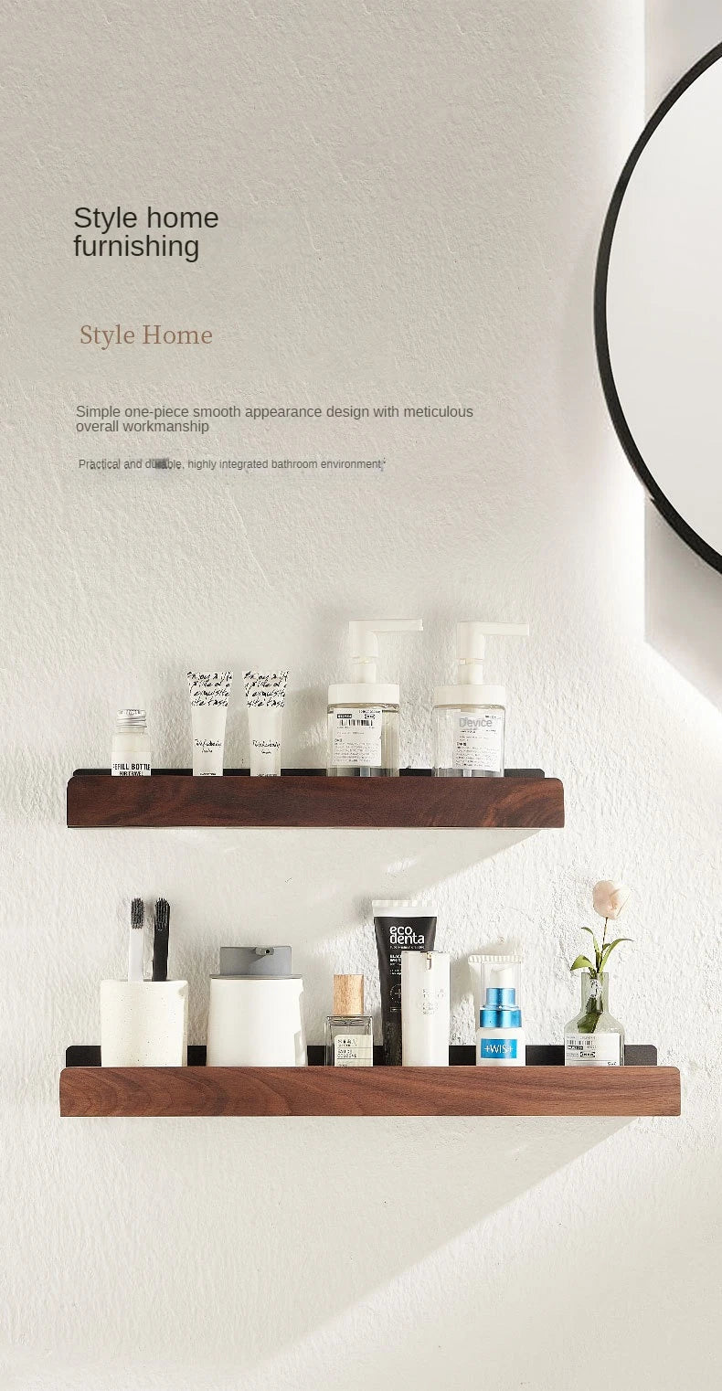 Black Walnut Wood Bathroom Storage Shelf Wall Mounted Toilet Non Perforated Bathroom