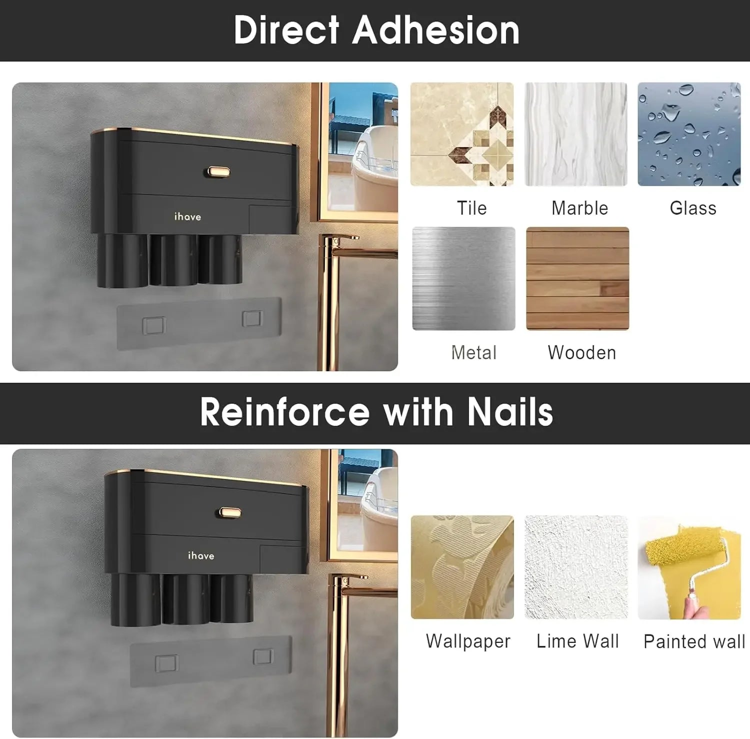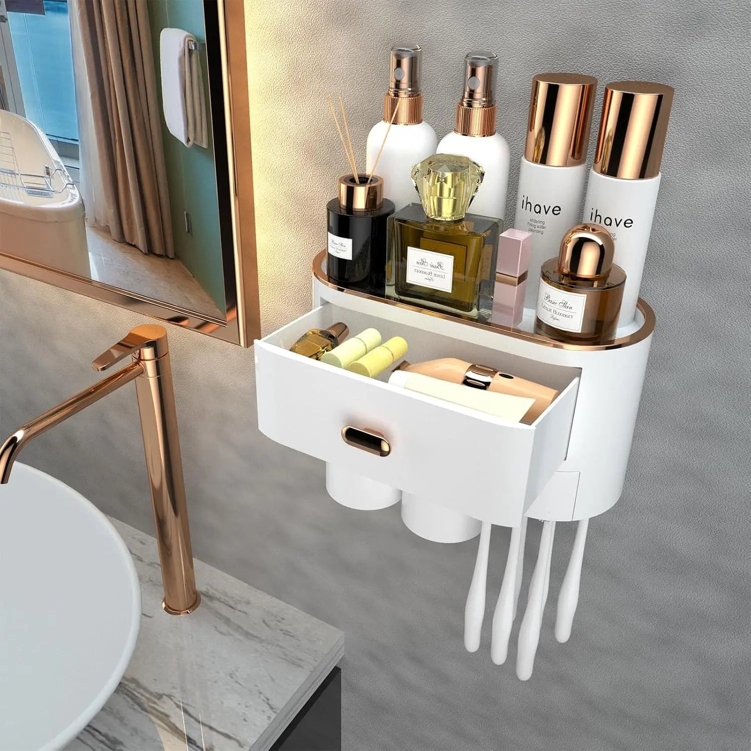 Ihave Toothbrush Holders for Bathrooms Cups Holder Wall Mounted