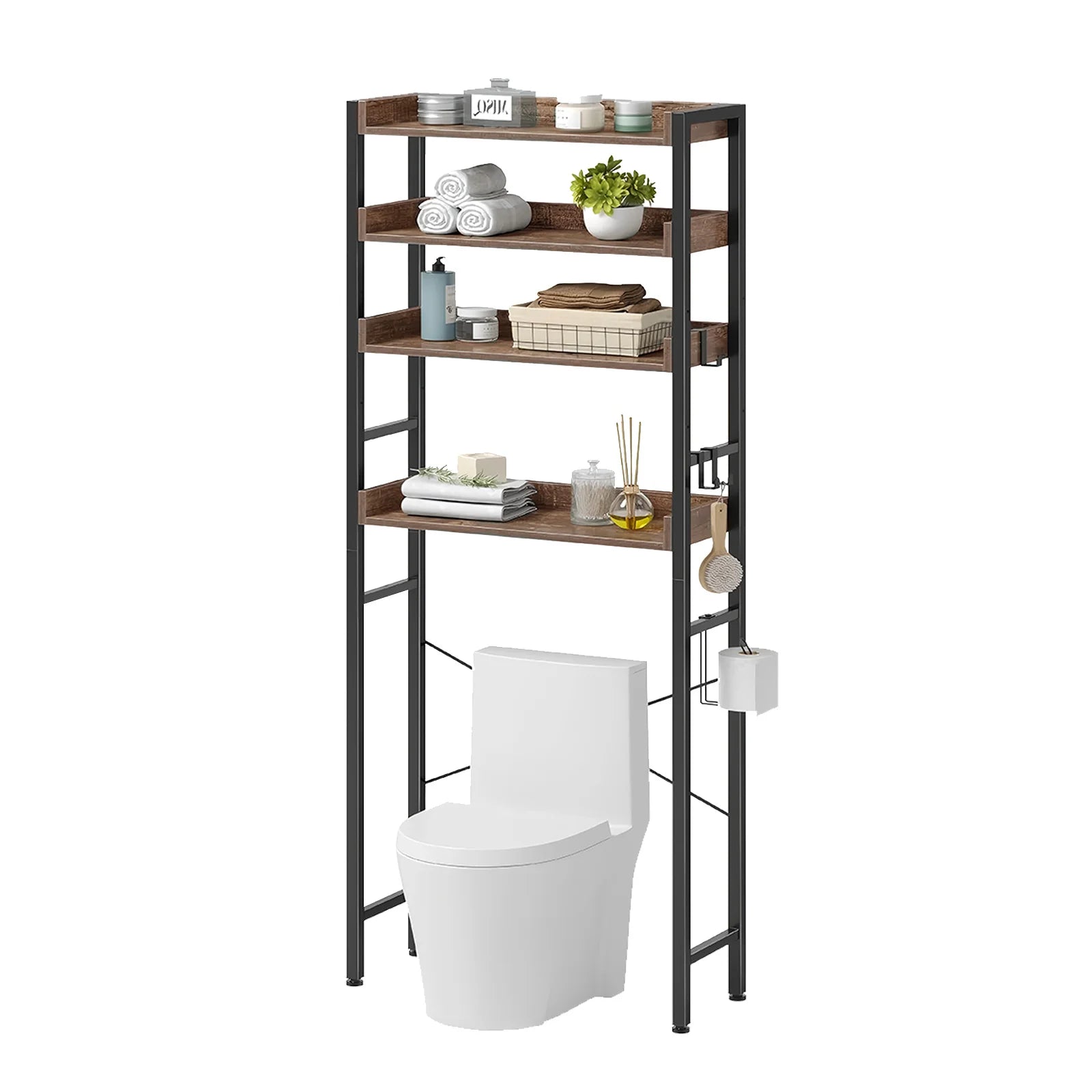 Over Toilet Storage Rack Tier Bathroom Organizer Freestanding Shelf Space Saver Toilet in Brown, Gray, or Black