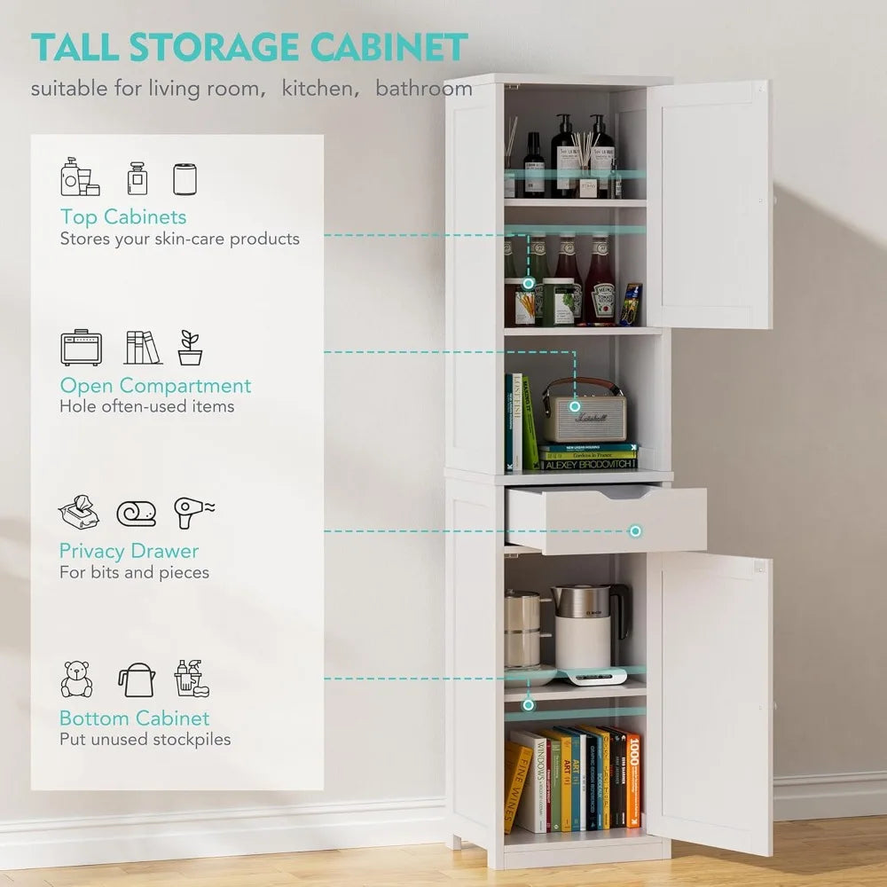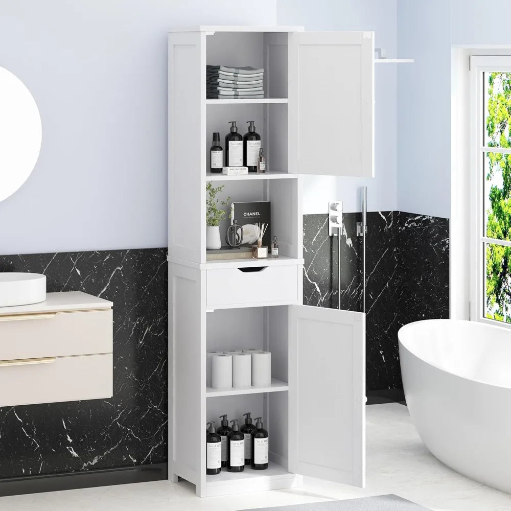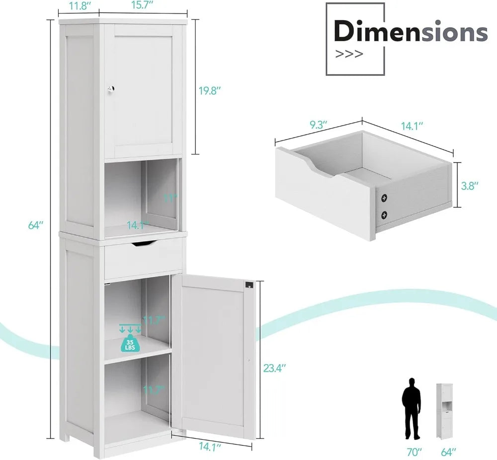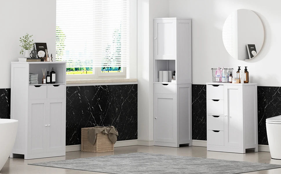 The 333", white design of this bathroomstorage makes it a versatile addition to any room. The adjustable height lets you adjust it to your preferred height.