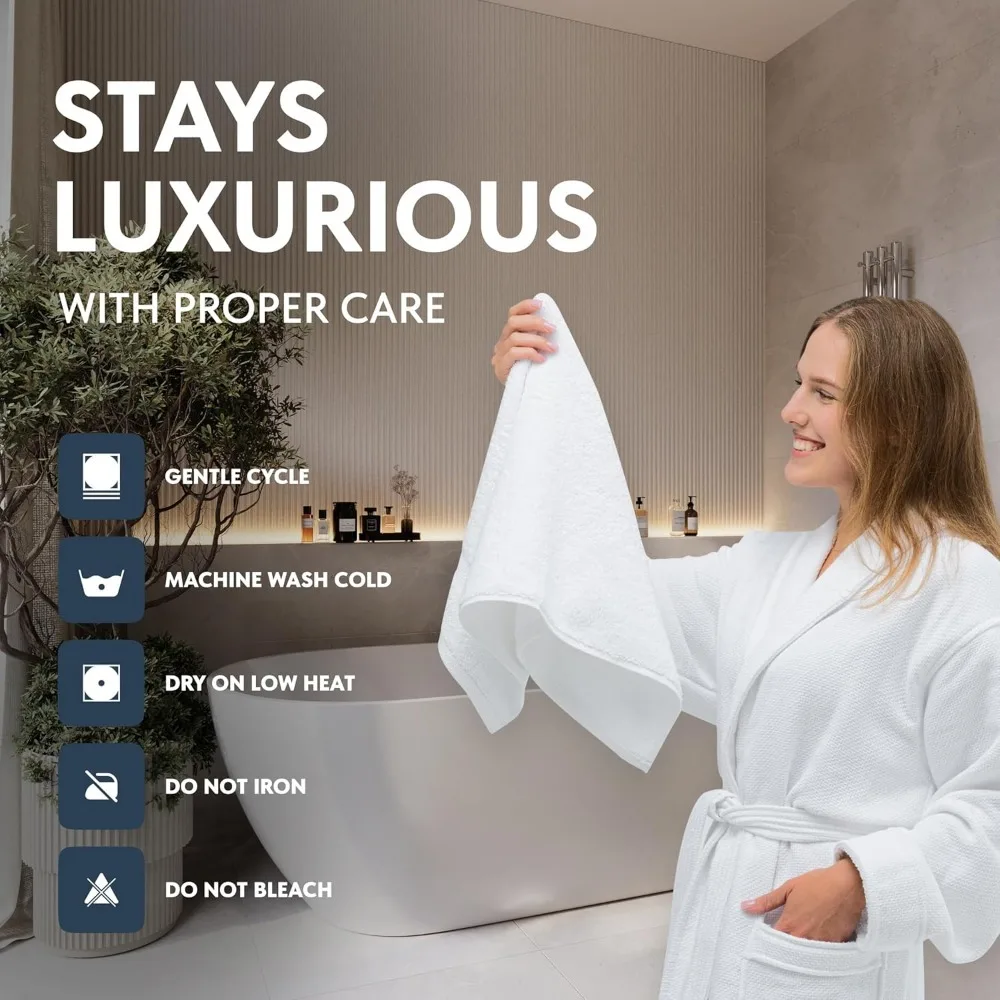 CARE INSTRUCTIONS - These are bleach safe towels, Simply toss them in the machine and wash. After the first wash, these towels will fluff up beautifully, feel fresh and soft. These towels are specially processed to make the dryer take less time, thus saving time and energy costs. Keep The Lint Trap Clean. Some Lint May Be Observed in First Wash. This Will Not Affect The Look, Feel or Performance of Towel.