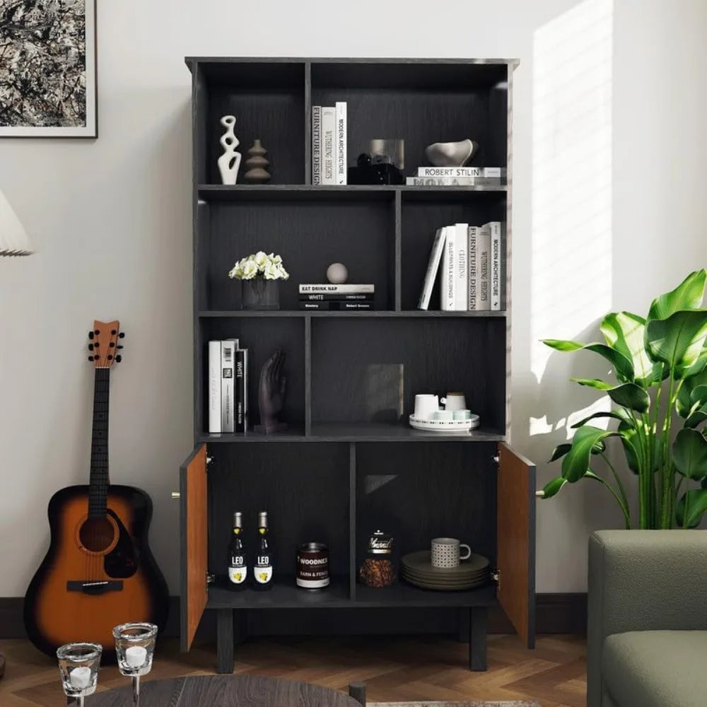Two Tone Bookshelf with Cabinet Doors Black Honey