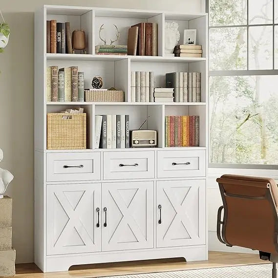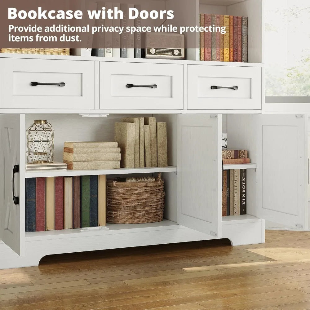 This 333", white bookshelves brings both functionality and style to your space. The built-in storage lets you store items inside to reduce clutter.