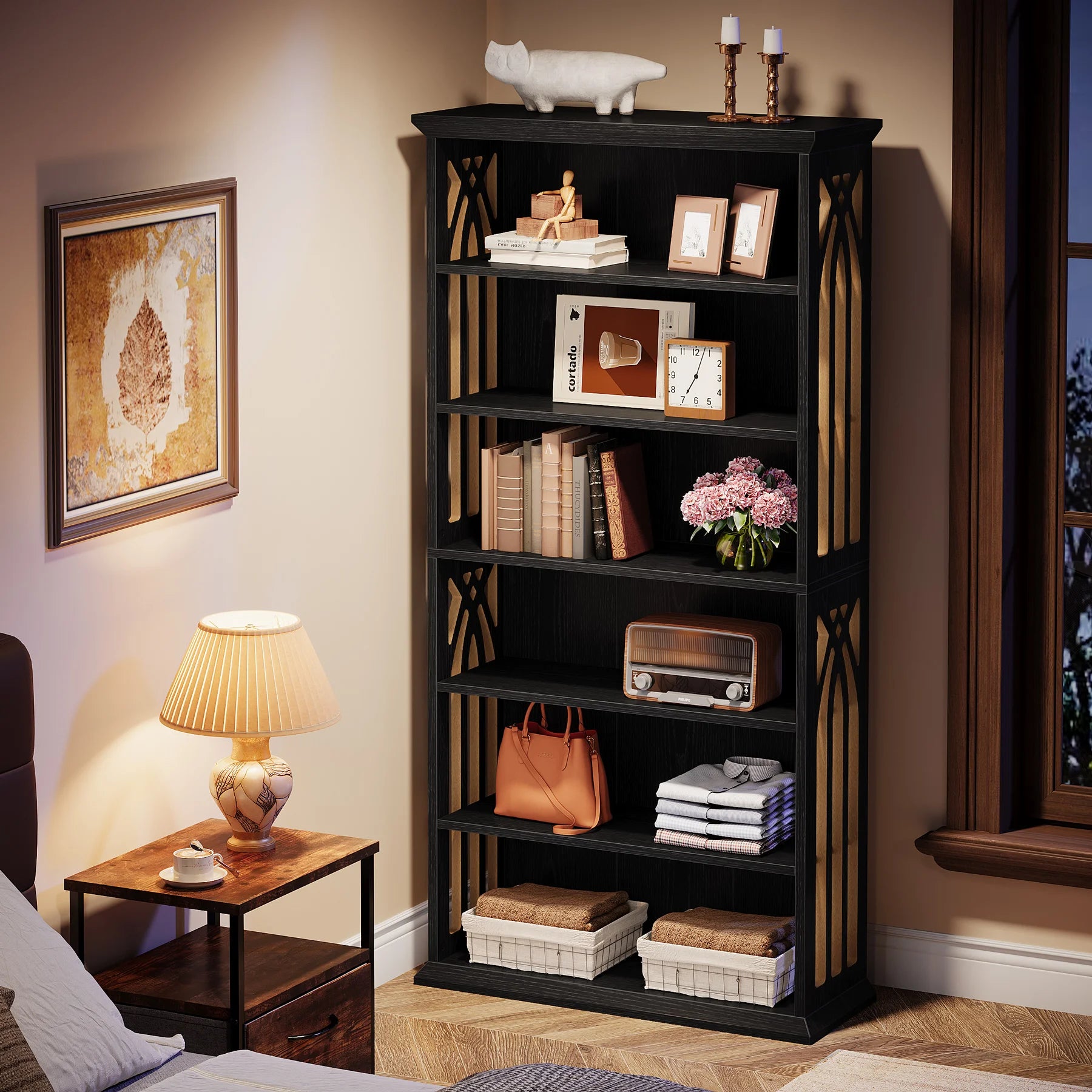Built with 75", white materials, this bookshelves offers long-lasting quality. The adjustable height lets you adjust it to your preferred height.