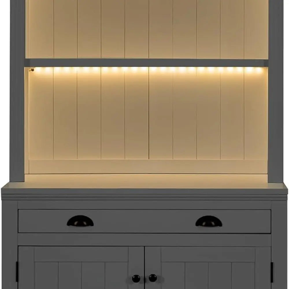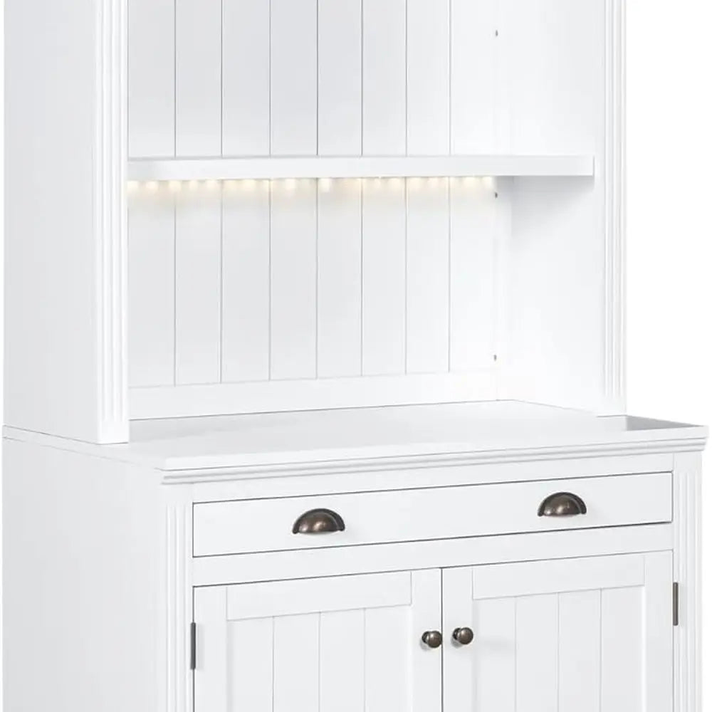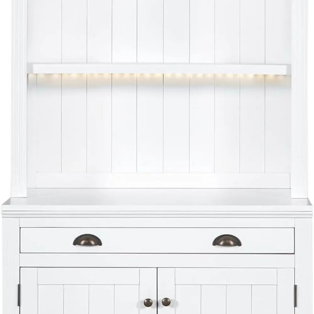 White Tall Wood Bookcase with Cabinets Doors Drawers Adjustable - Adjustable Height