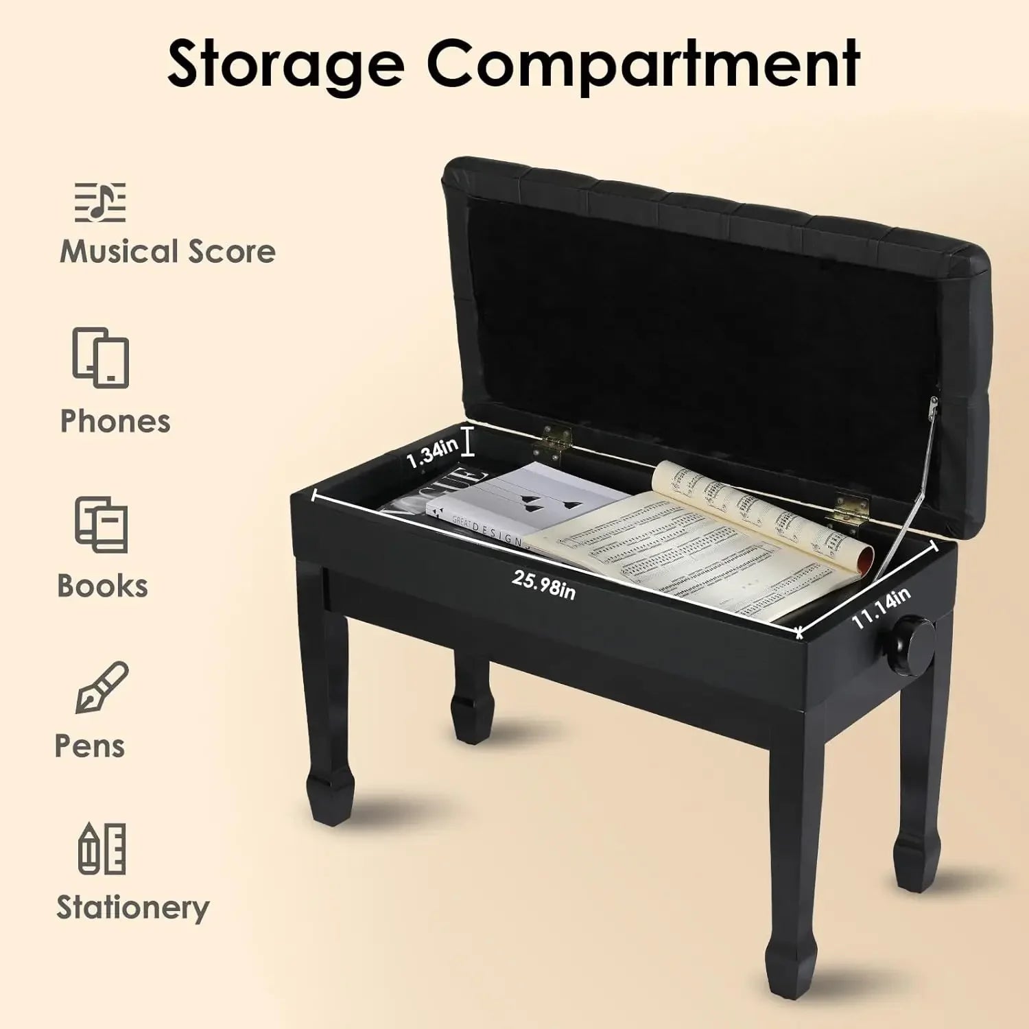 Model Number: Piano Bench with Leather Cushion