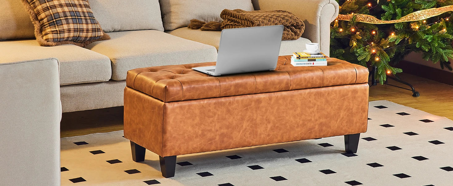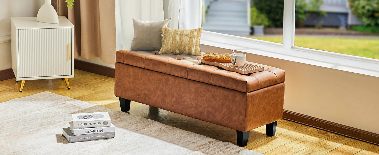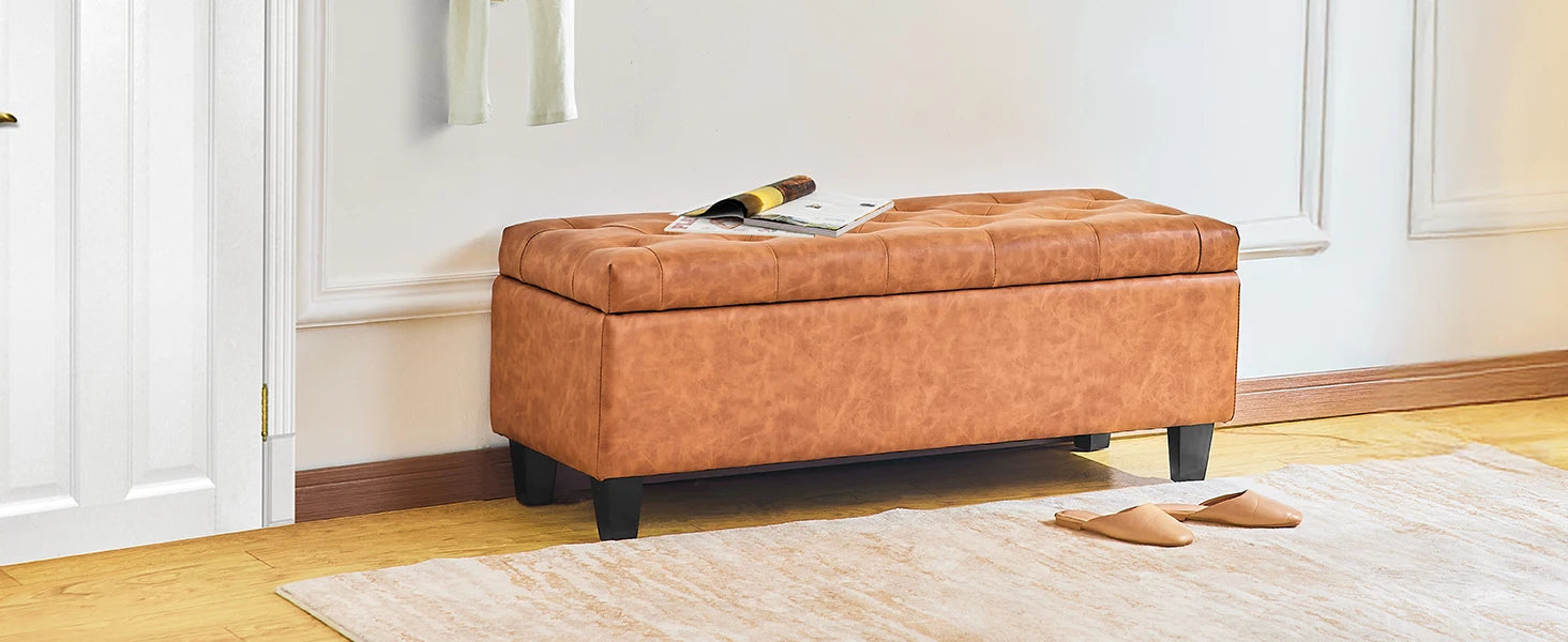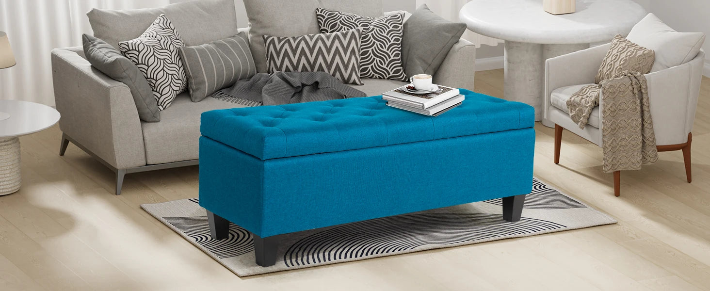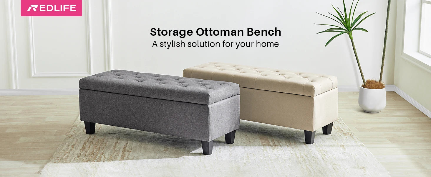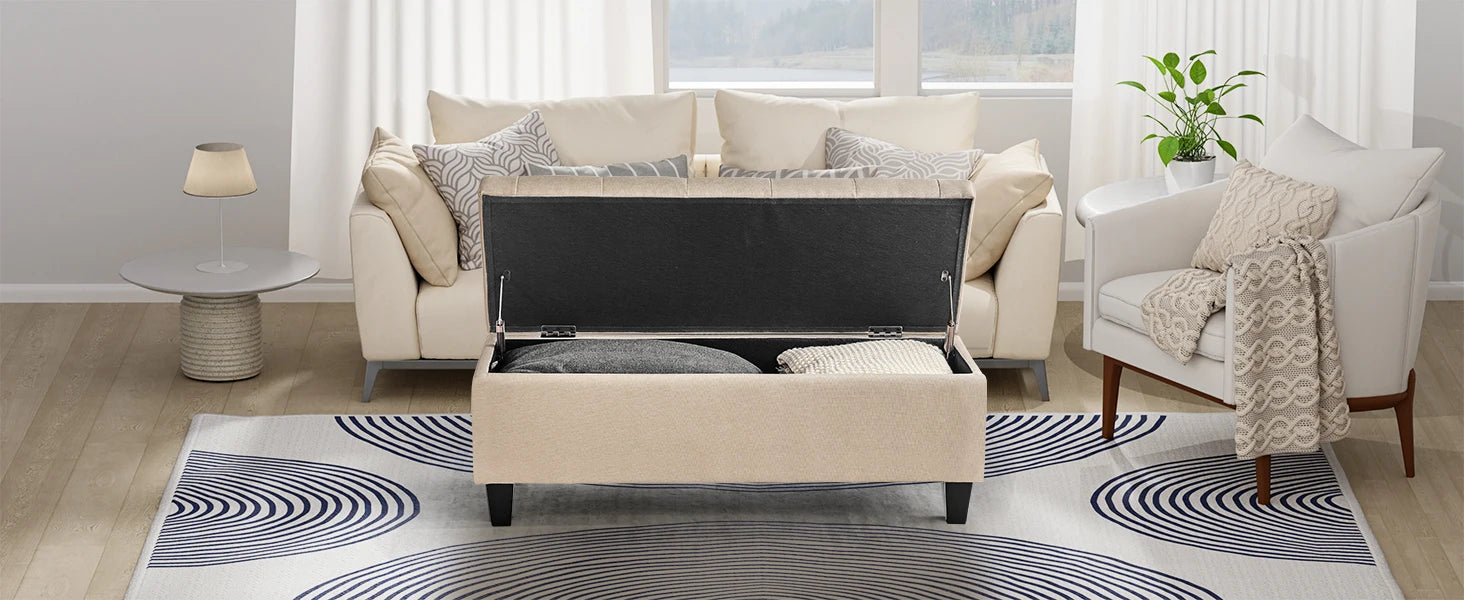 【Multi-function Use】- This upholstered storage ottoman can be a end of bed bench in the bedroom, a coffee table in the living room, a shoes bench at the entryway, a reading bench at leisure area, also a foot rest bench. It can provide extra seats for your guests and relax your feet after a long day.