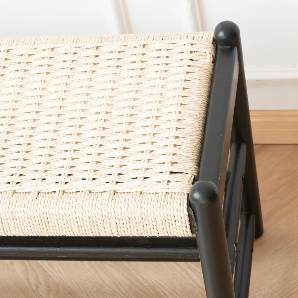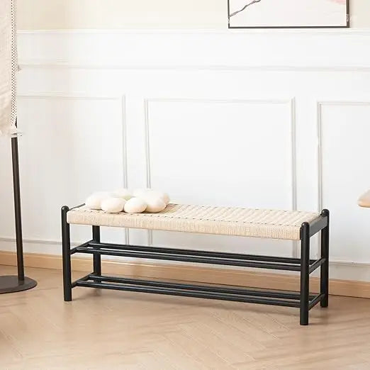rustic Oak Entryway Bench with Shoe Storage Long Woven