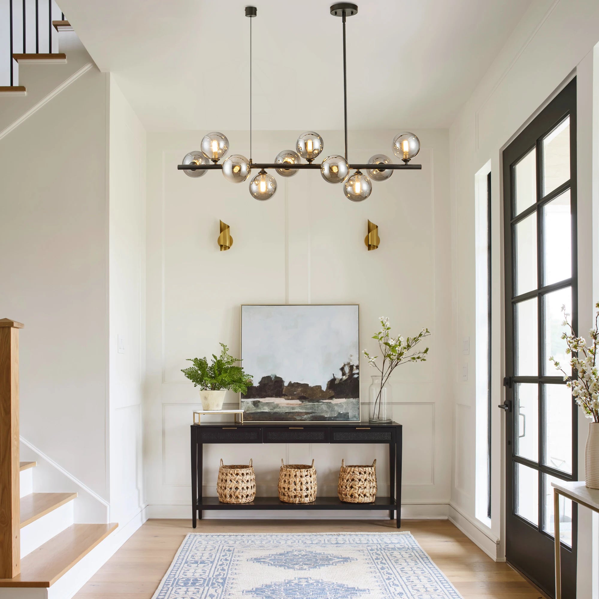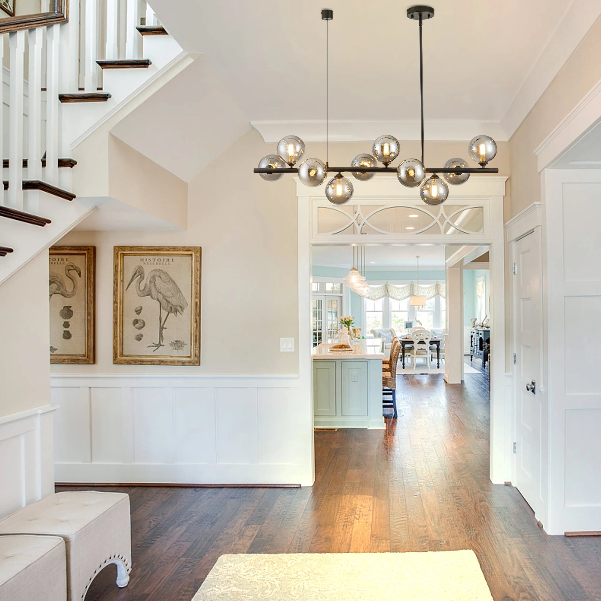 Featuring 333", black construction, this chandeliers combines durability with aesthetic appeal. The adjustable height lets you adjust it to your preferred height.