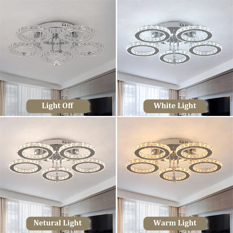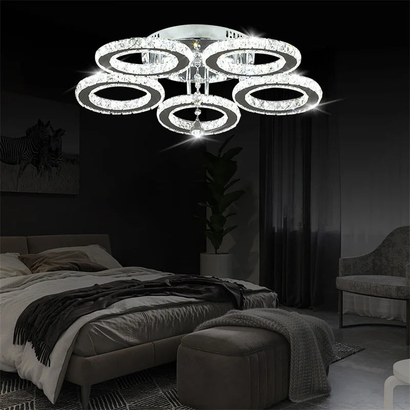 Rings Crystal Led Chandeliers Ceiling Mirror Stainless Steel in 8014 or Cool White no RC