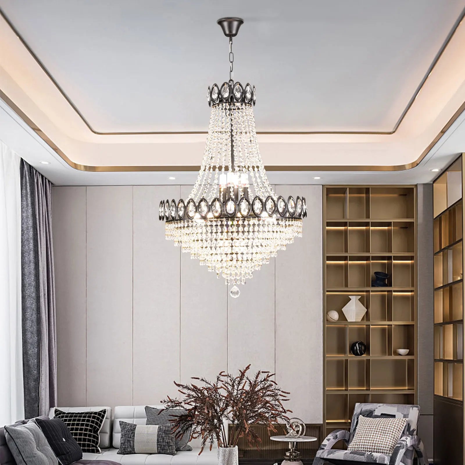 Built with 333", black materials, this chandeliers offers long-lasting quality. The adjustable height lets you adjust it to your preferred height.