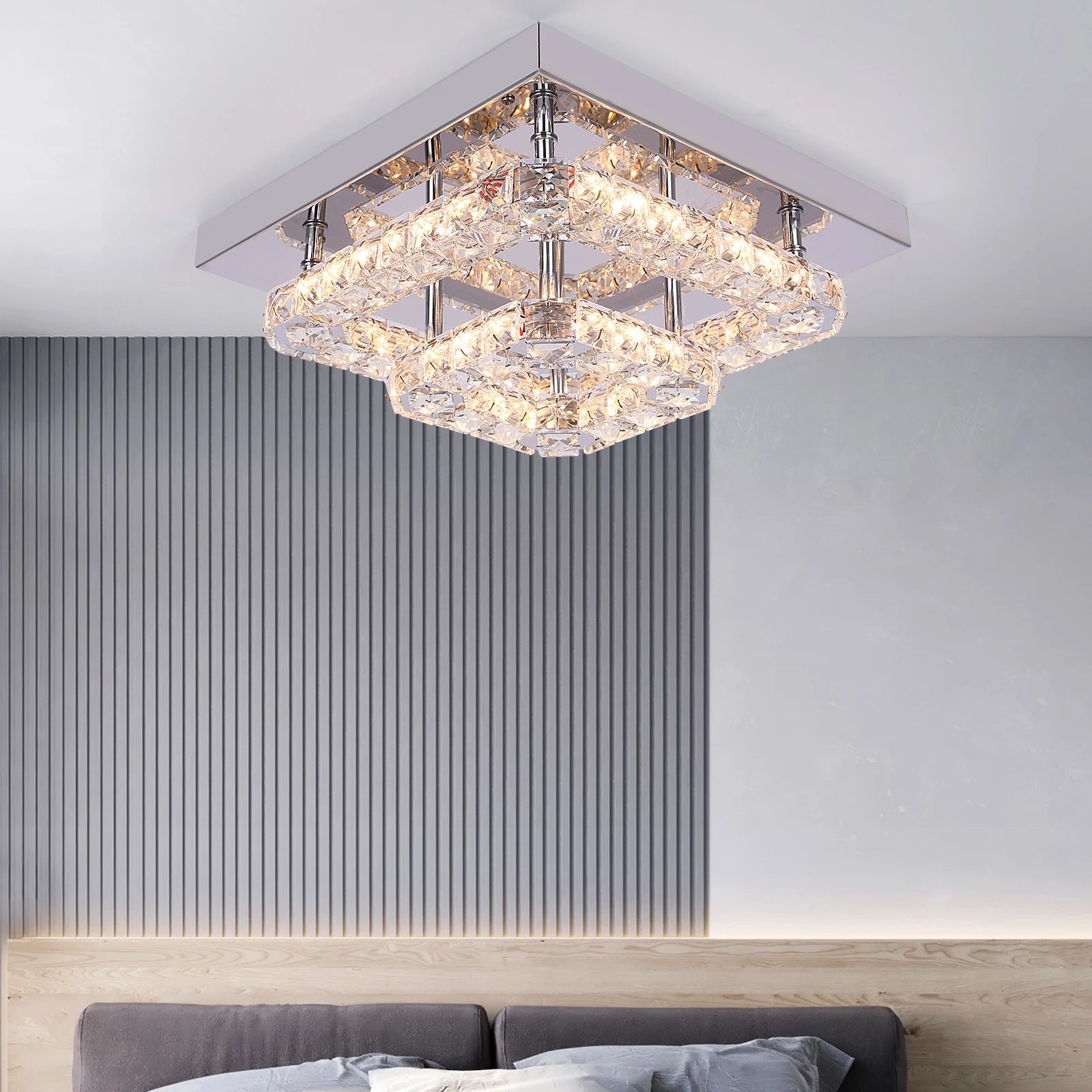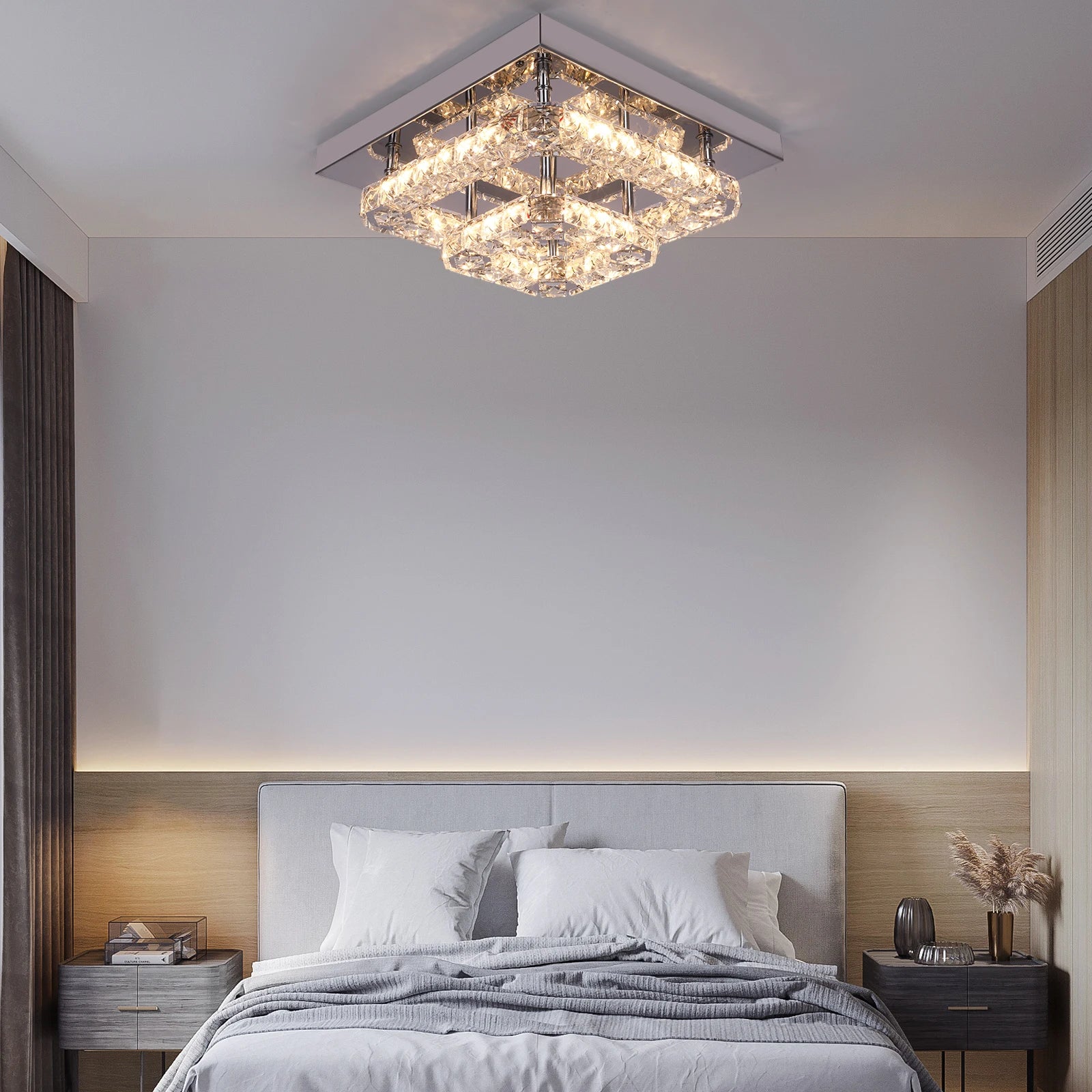 Vetrulus Crystal Chandelier Luxury Living Room Bedroom Ceiling Lights in Changeable or HQ-3MF2-SS