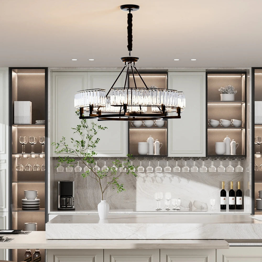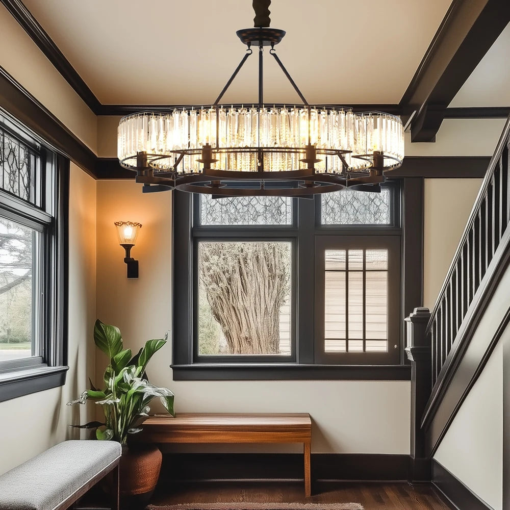 Built with 65" × 58" × 34", black materials, this chandeliers offers long-lasting quality. The waterproof lets you it won't be damaged by water or moisture.