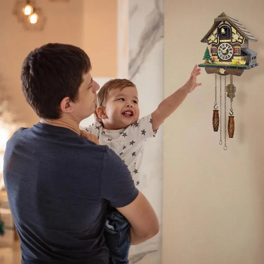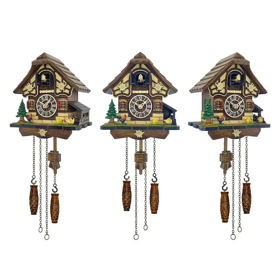 Family Cuckoo Clock Germany Style Farmhouse Wooden Wall Clock with Rooster Hen