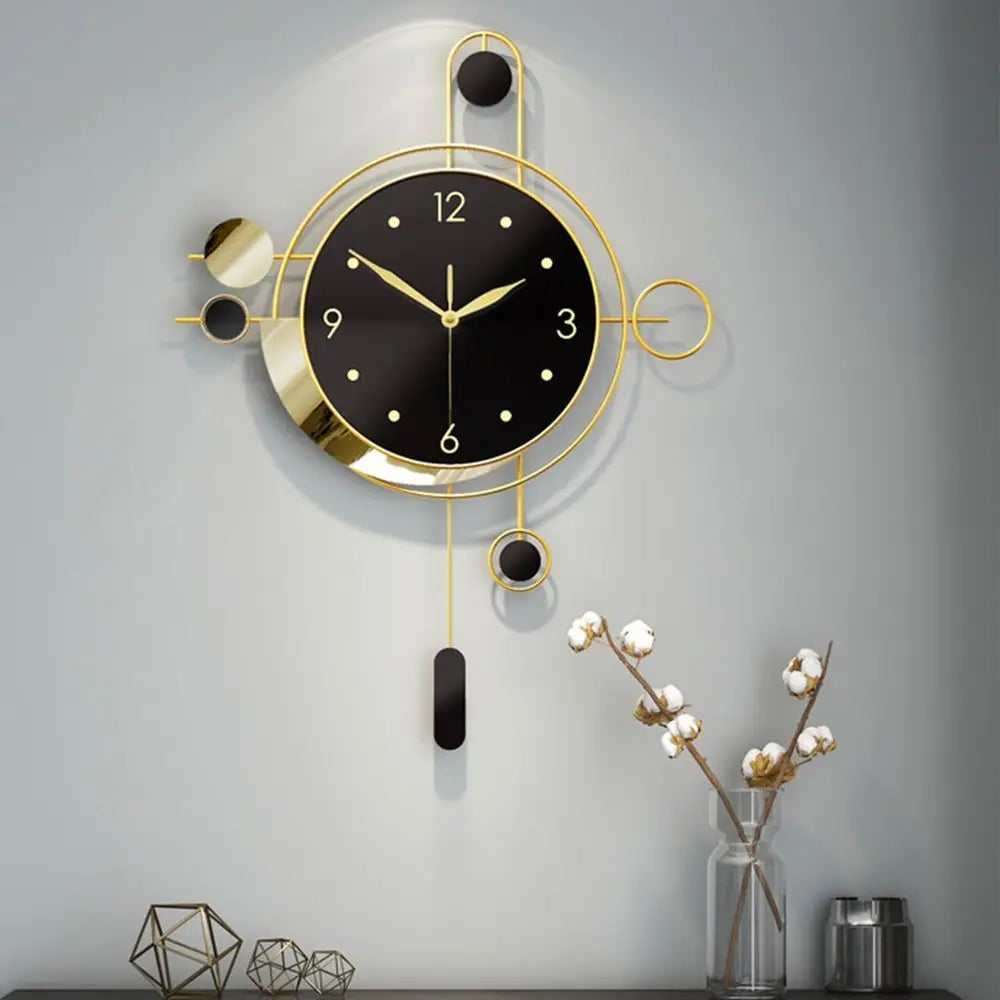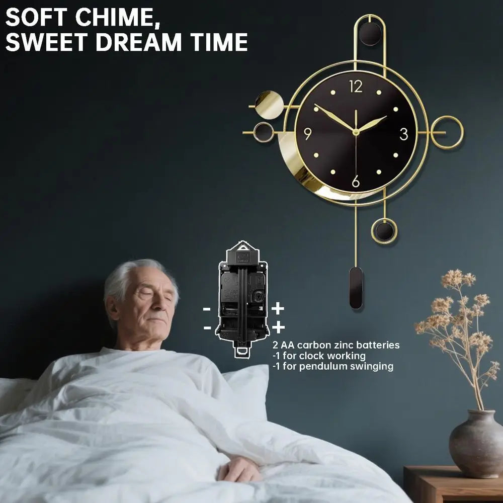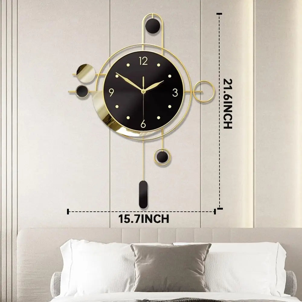 Golden Silent Pendulum Wall Clock Battery Powered Large 7x21