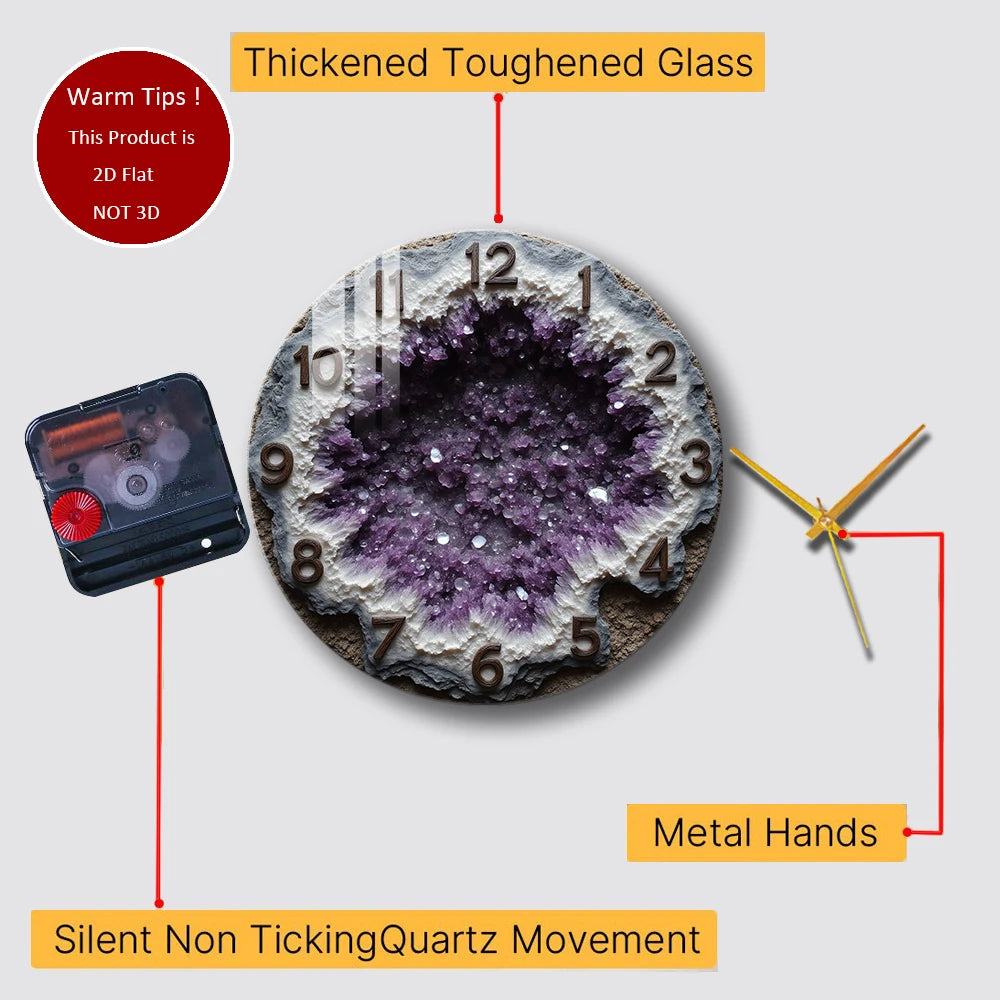 Tempered Glass Wall Clock Amethyst Geode Face Suitable For (12 inch--30x30CM)