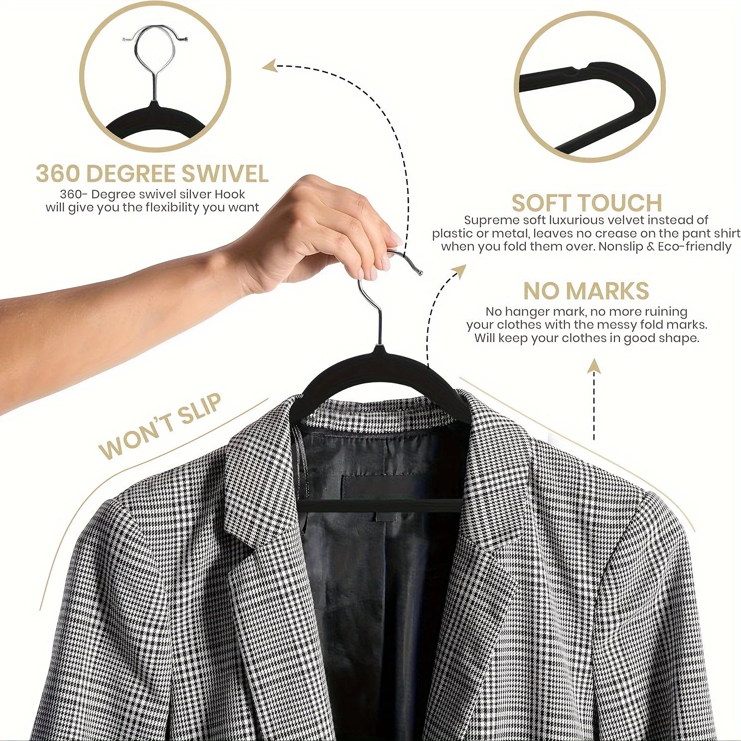 Built with 333", plastic and velvet materials, this hangers offers long-lasting quality. The built-in storage lets you store items inside to reduce clutter.