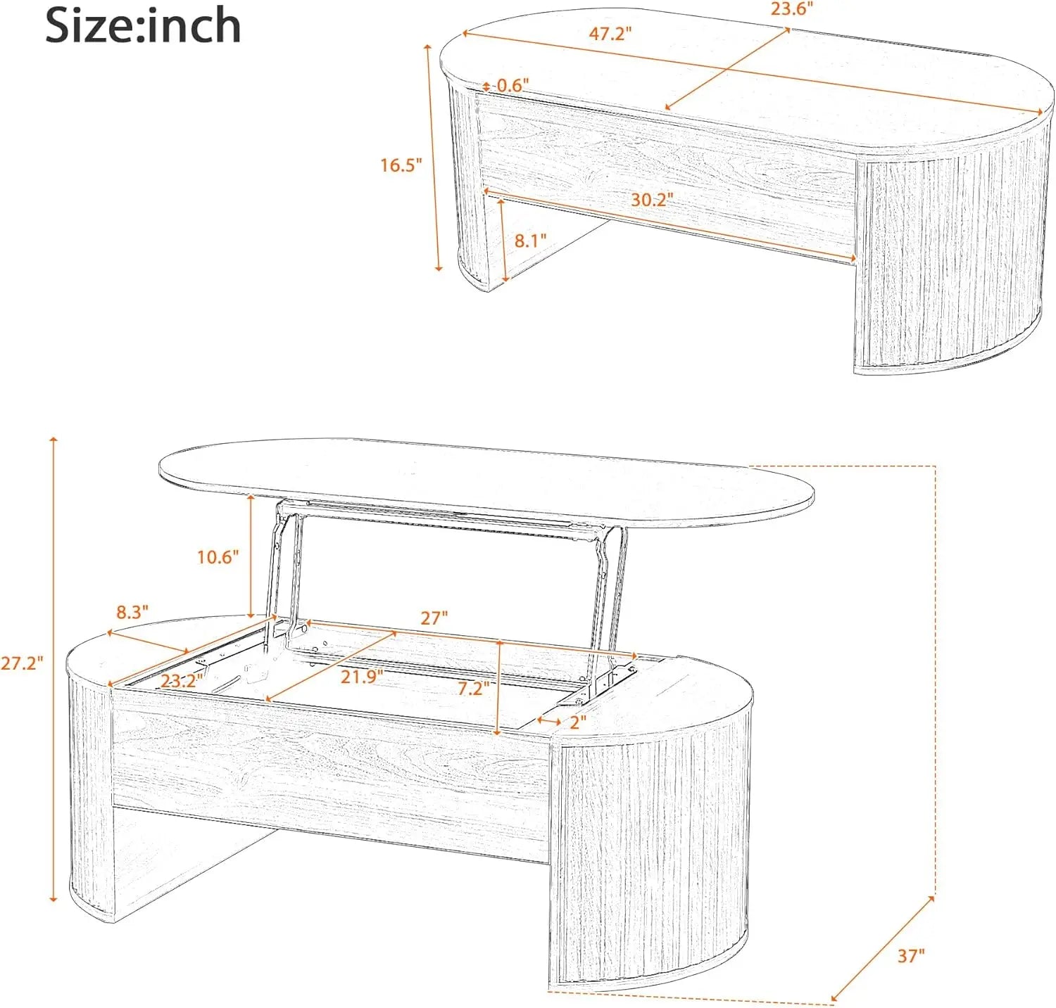 | Coffee Table Size | 47.2’’ W x 23.6'' D x 16.5'' H |