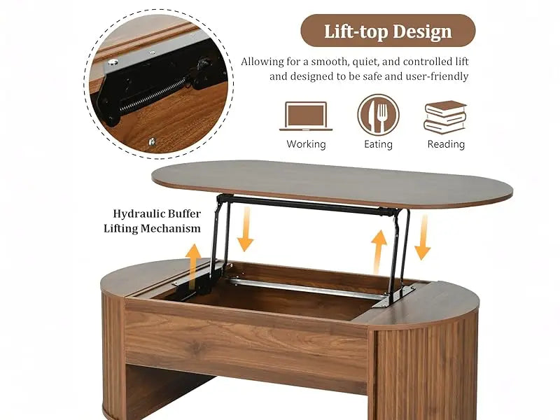 This coffee table is equipped with a hydraulic lift mechanism that allows you to easily raise and lower the tabletop. This feature is especially beneficial for those who work or eat in front of the TV or prefer a more ergonomic working position without the need for a separate desk.