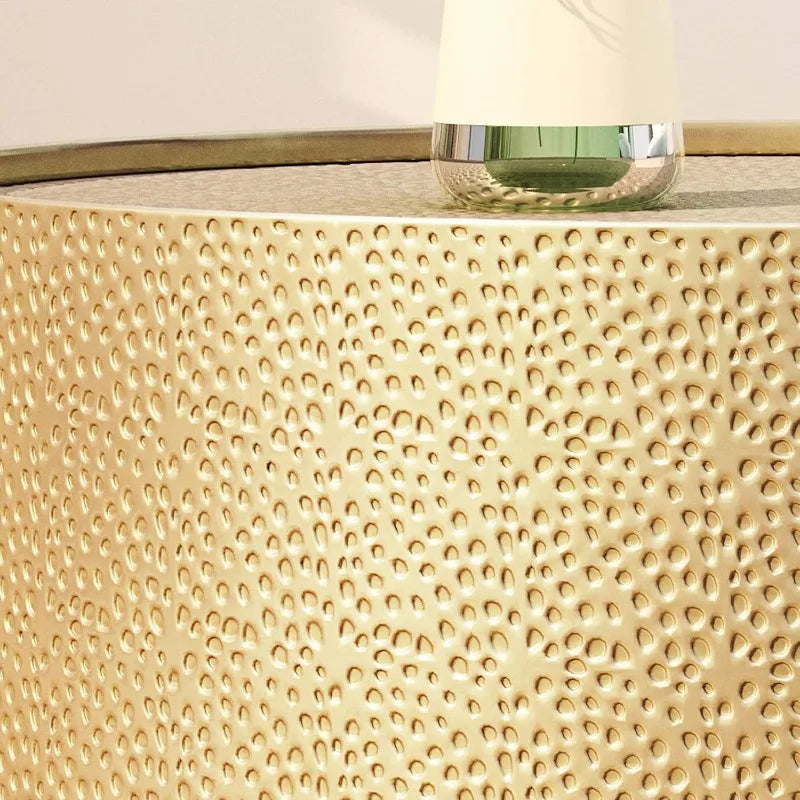 HAMMERED METAL: This coffee table features a hammered surface to create a gorgeous textured look. This finish allows this piece aesthetic versatility, blending seamlessly with a range of decor styles.
