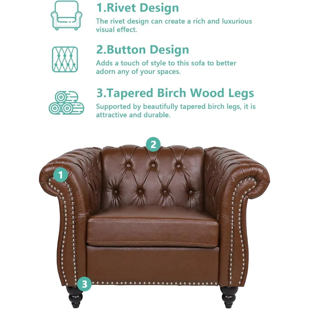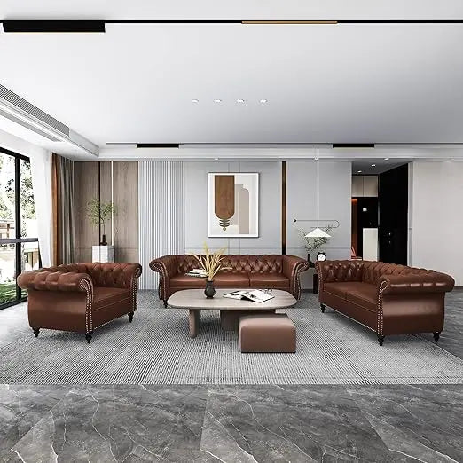 The modern, leather design of this couches makes it a versatile addition to any room.
