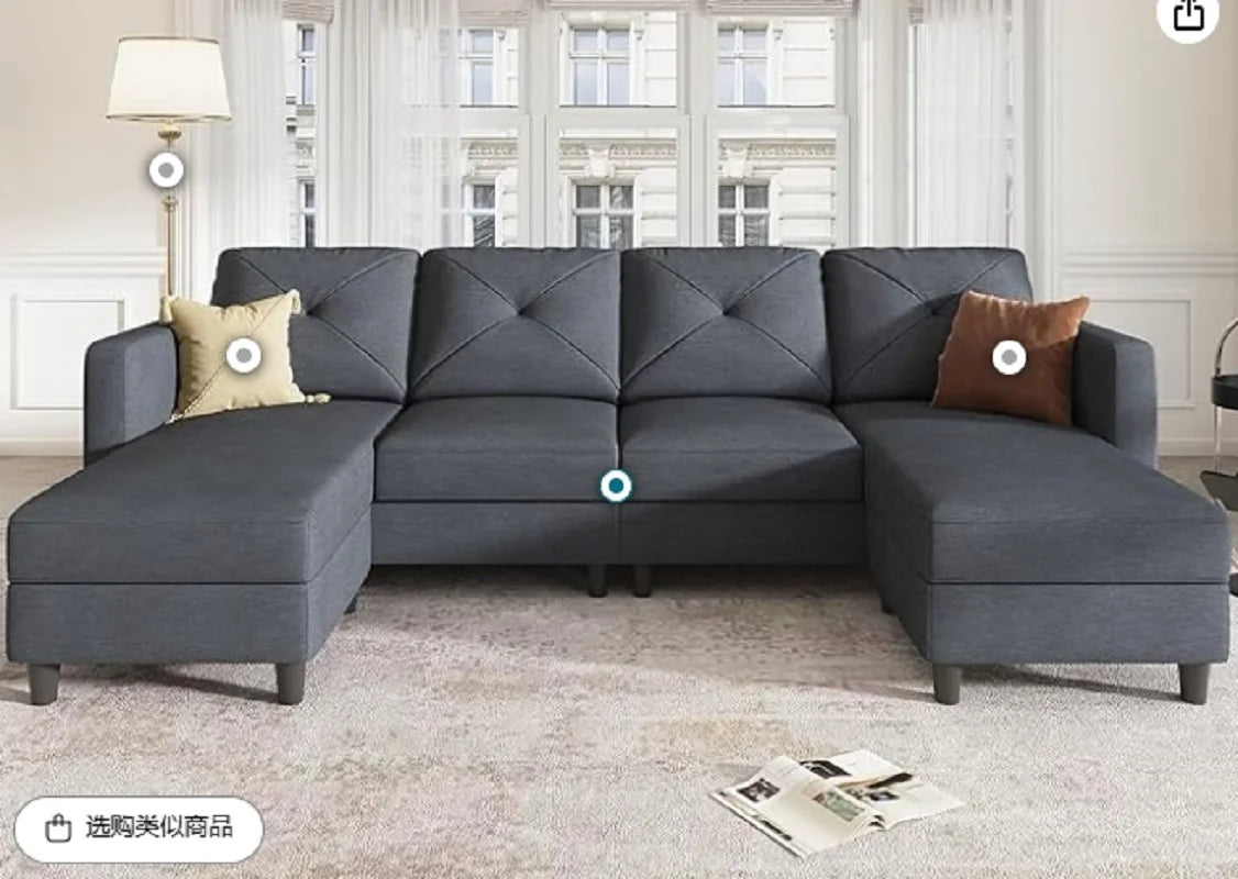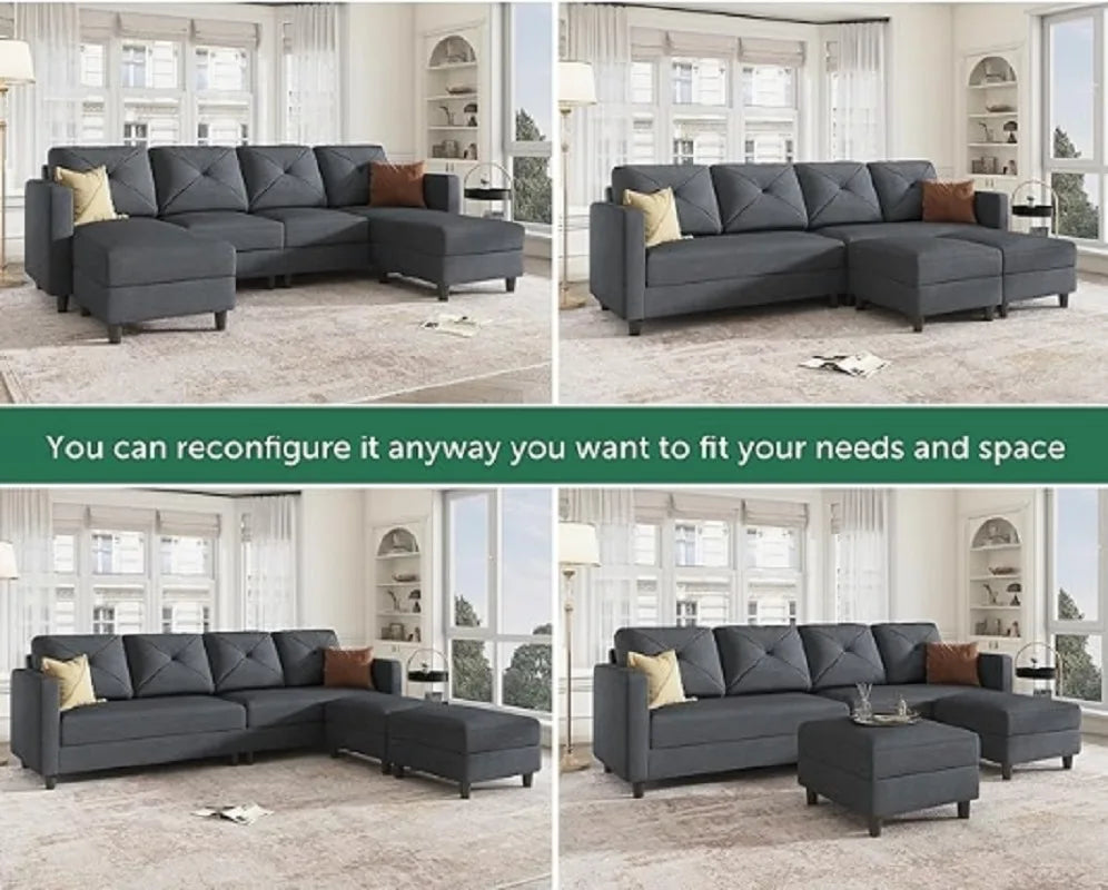 The gray, modern design of this couches makes it a versatile addition to any room.