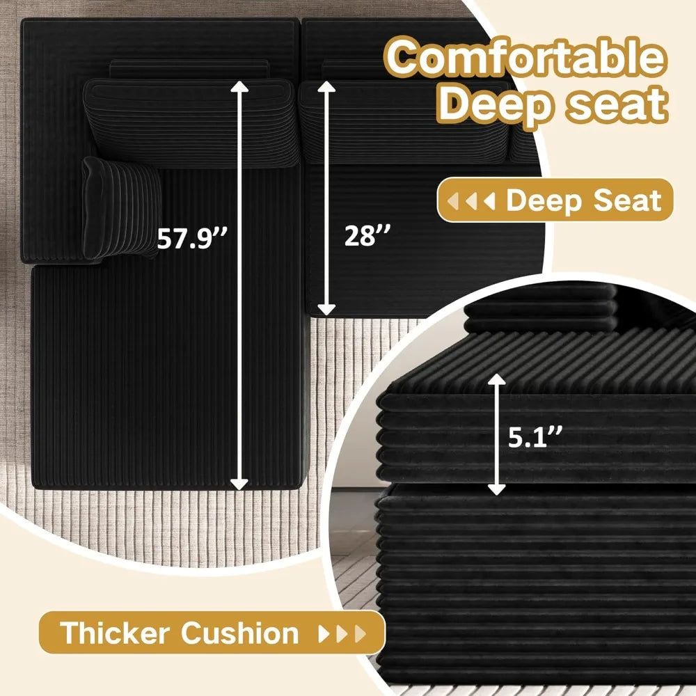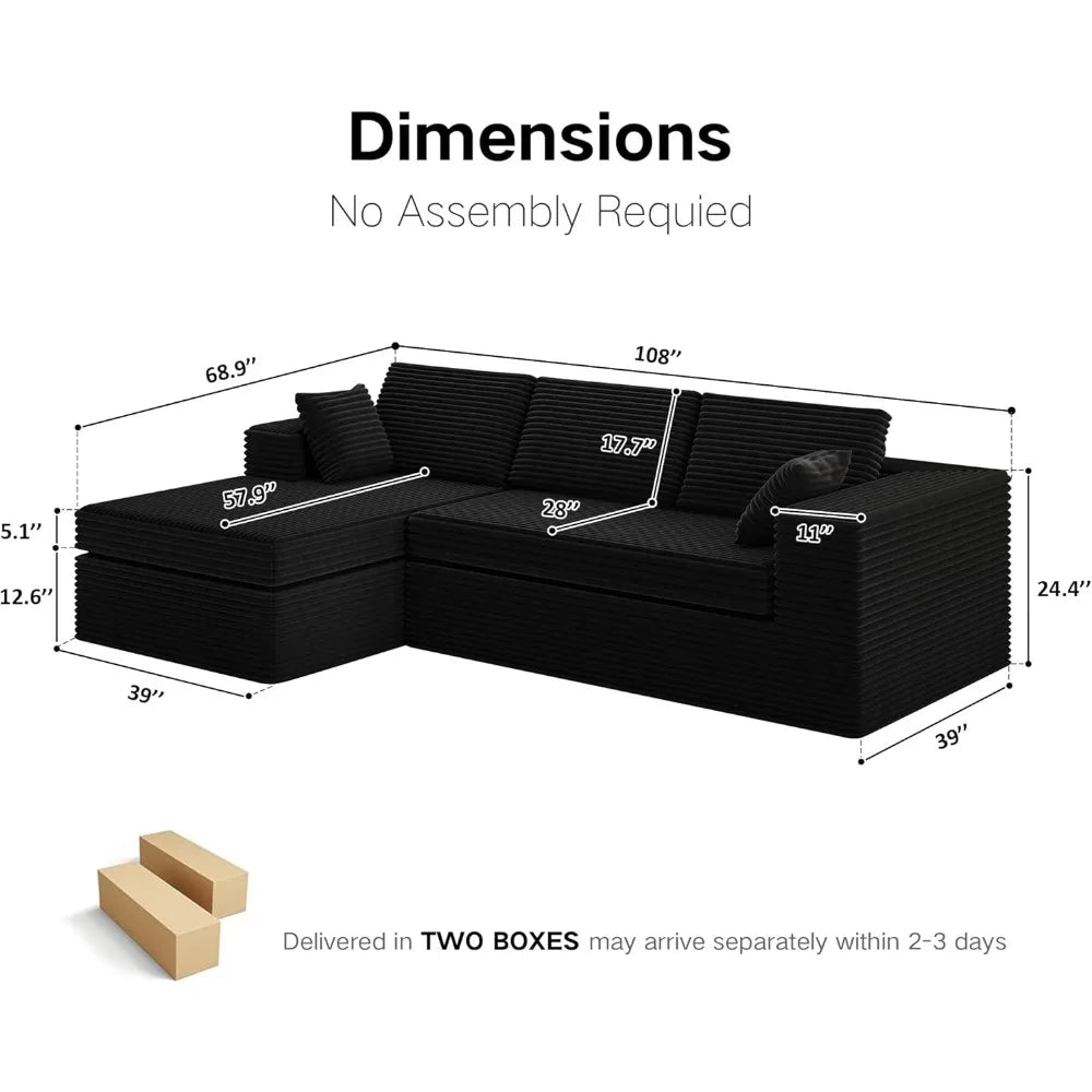 Extra Firm 108 Cloud Boneless Couches for Living Room Modular Sectional Cloud in Black or Dark Grey