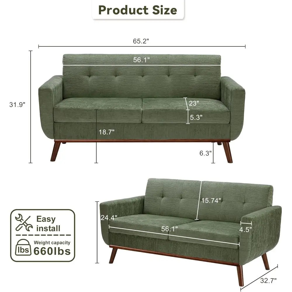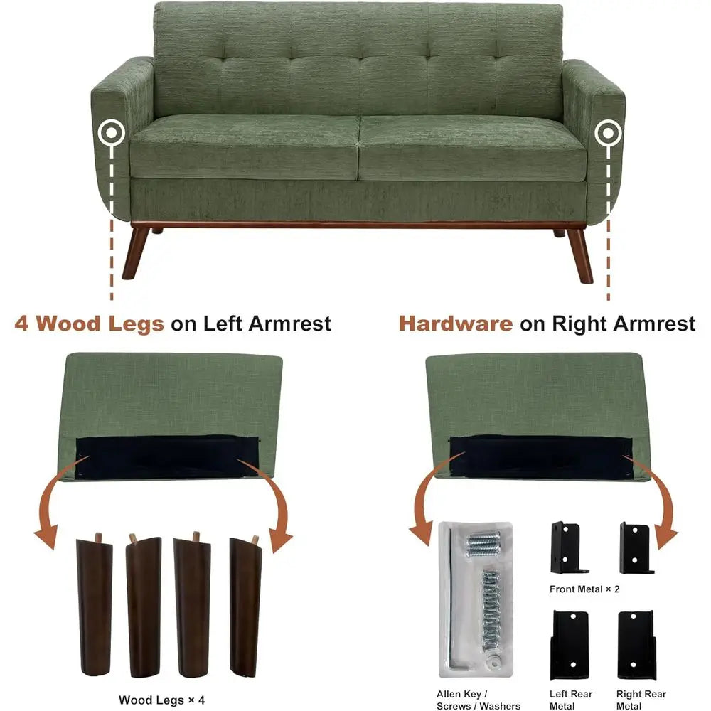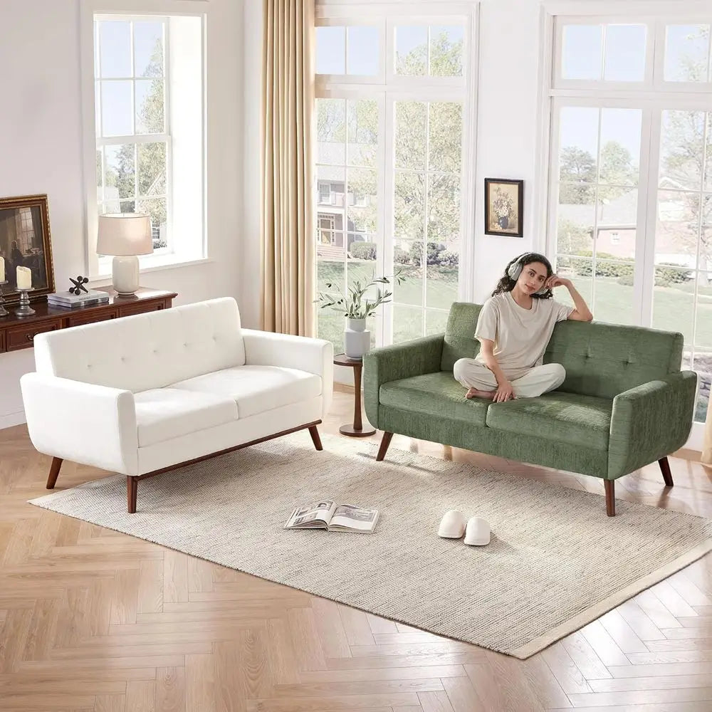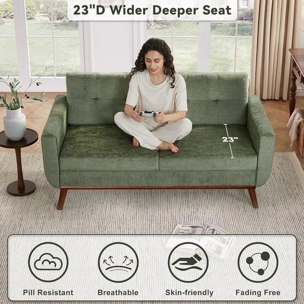 Green Button Tufted Loveseat for Modern Living Room Bedroom