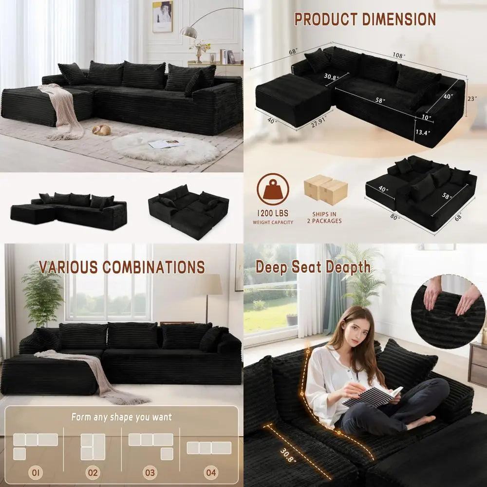 Shaped Modular Sectional Sofa for Living Room Plush Corduroy