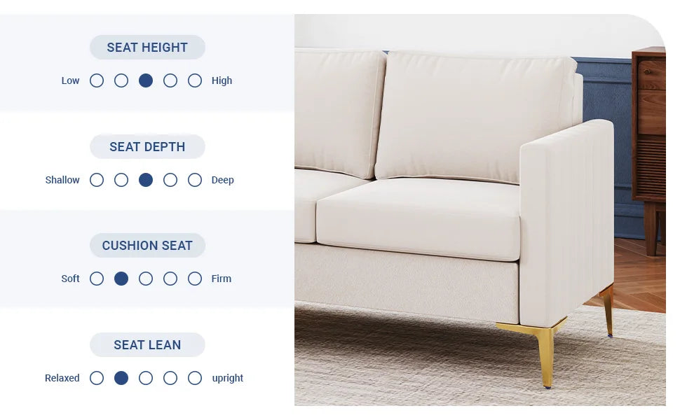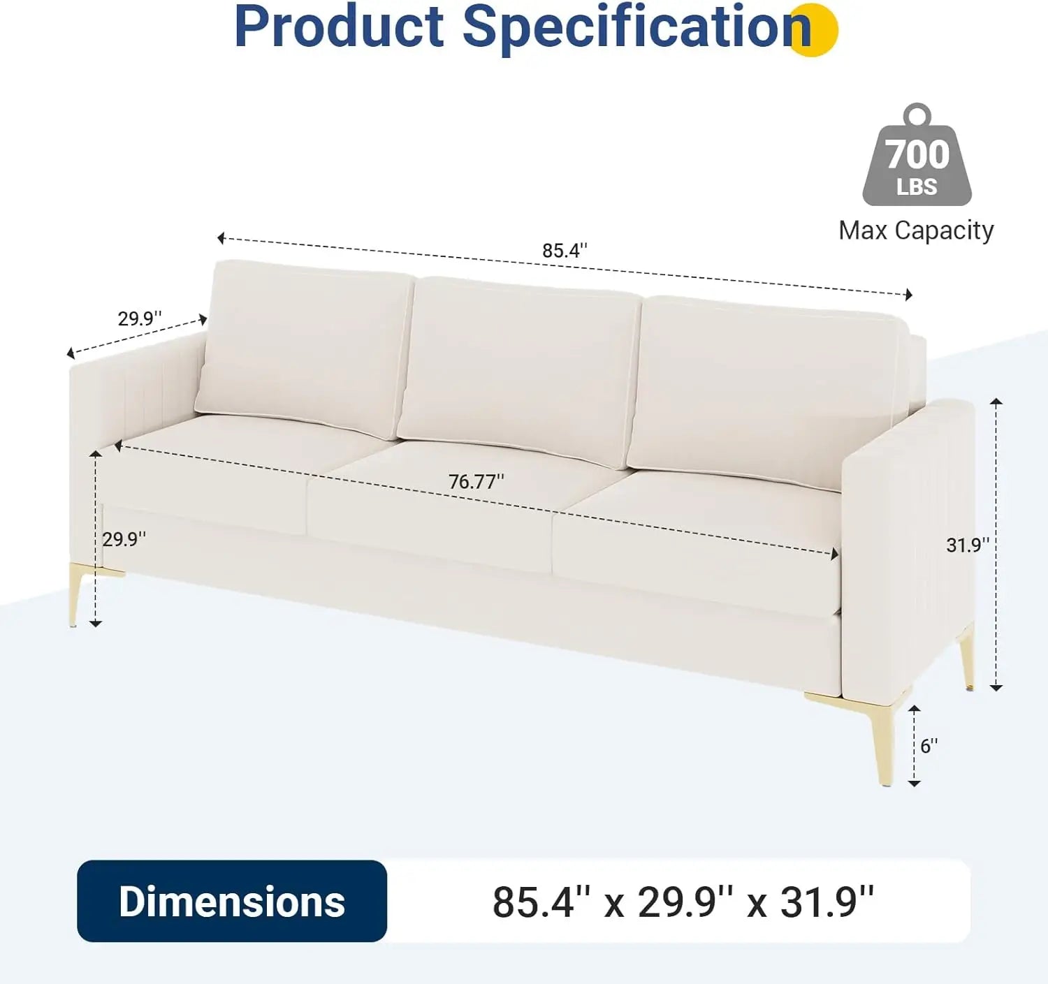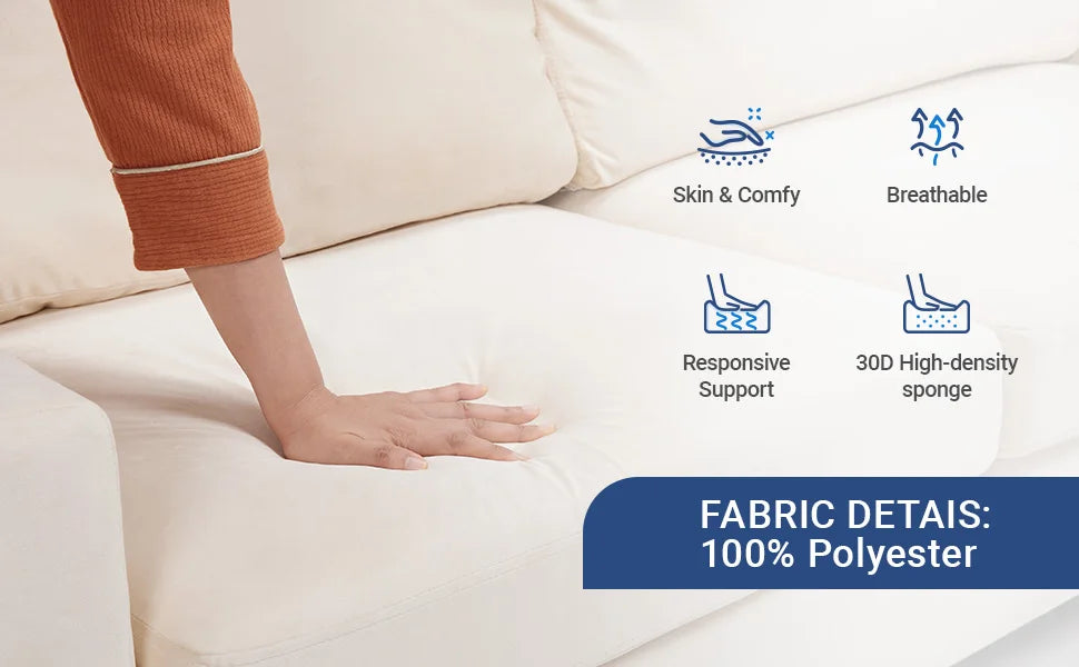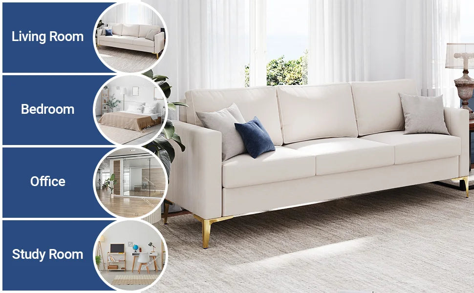 The 85", ivory design of this couches makes it a versatile addition to any room.